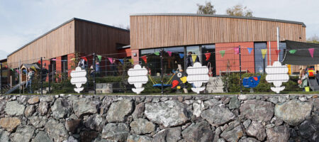 Seit dem Spatenstich im April 2021 wurden auf einer Grundfläche von rund 500 Quadratmetern drei neue Baukörper errichtet. Sie nehmen, so Architekt Stefan Paptistella, das bisherige Gebäudekonzept mit verschiedenen Pultdächern auf. Untergebracht sind eine Krippengruppe, eine Kindergartengruppe sowie ein Kinderrestaurant. Auf dem gesamten Areal sind damit drei Kindergarten- und eine Krippengruppe untergebracht. Ein großzügiger Flurbereich mit Garderoben und Spielflächen verbindet die Gebäude, auch mit dem Altbau. Optisch setzen sich die neuen Bereiche durch die Fassade aus Lärchenholz mit zusätzlichen Zementflächen ab. Hinzugekommen sind auch Flächen im Außenbereich, hierfür wurde eine Stützmauer verbaut, um den Hang Richtung Zehntstraße abzufangen.