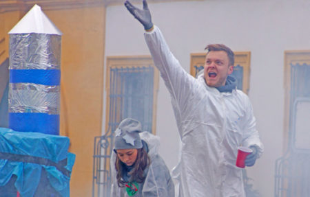 Angeführt wurde der Gaudiwurm vom Wagen des Faschingsvereins Hallstadt. Themen aus der Lokalpolitik gab es auf zwei Wägen zu sehen. Einmal bei der Solidarität Hallstadt – „Hallstadt hat an Mini-Park, die Soli hat dazu die Farb“ war zu lesen, und hinter dem Faschingswagen bewegten sich einige (menschliche) Rollen Rollrasen durch die Stadt. Und dann der Stammtisch Greta Diller, der sich fragte: „Hallstadt – Berlin? Wer ist schneller?“ Angespielt wurde hier auf die vielen Großbaustellen im Stadtgebiet, vom Marktplatz und der Lichtenfelser Straße bis hin zum Hochwasserdamm, der Sanierung des Georgenhofes, dem neuen Feuerwehrhaus und dem Stadtpark. Mittendrin als Karikatur: „Baumeister Söder“.