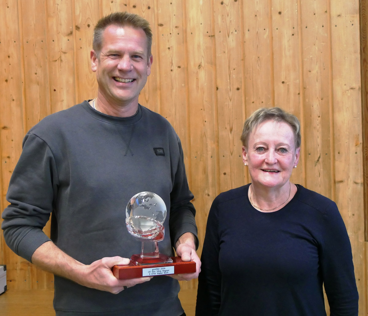 Die seit 2006 jährlich verliehene Wandertrophäe für besondere Leistungen im Ehrenamt überreichte die Zweite Vorsitzende Silvia Wagner an Reiner Dütsch.