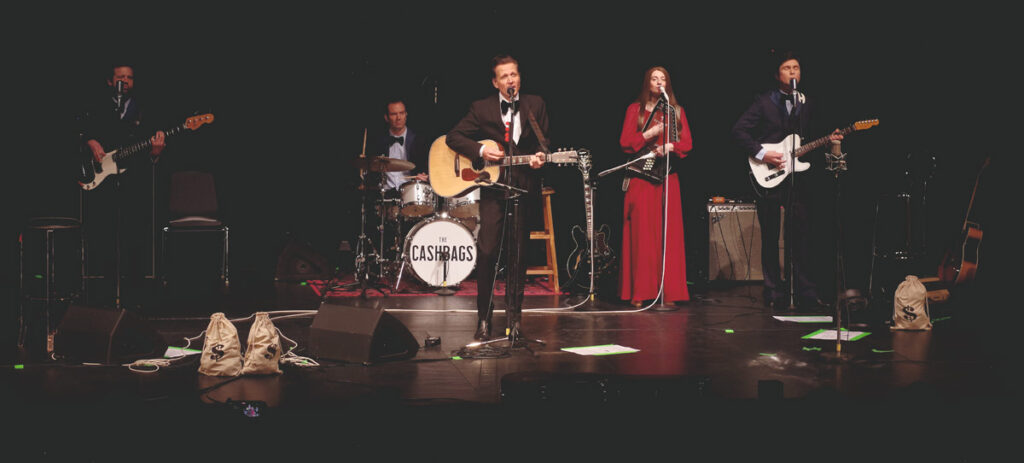 Am 1. März um 19 Uhr bringen The Cashbags mit ihrer Show „One Hit at a Time – The Best of Johnny Cash“ den unverwechselbaren Sound des „Man in Black“ in den Kulturboden Hallstadt. Nichts wird hier 1:1 kopiert und trotzdem ist alles echt, live und wie damals. Die Rolle des Johnny Cash wird von dem gebürtigen US-Amerikaner Robert Tyson verkörpert, der seinem Vorbild stimmlich und äußerlich so verblüffend nahekommt, dass man glaubt, das Original vor sich zu haben. Neben ihm brilliert die aus Coburg stammende Sängerin Valeska Kunath als June Carter Cash sowie Stephan Ckoehler, David Seezen und Willie Sieger als das berüchtigte Begleittrio „The Tennessee Three“.