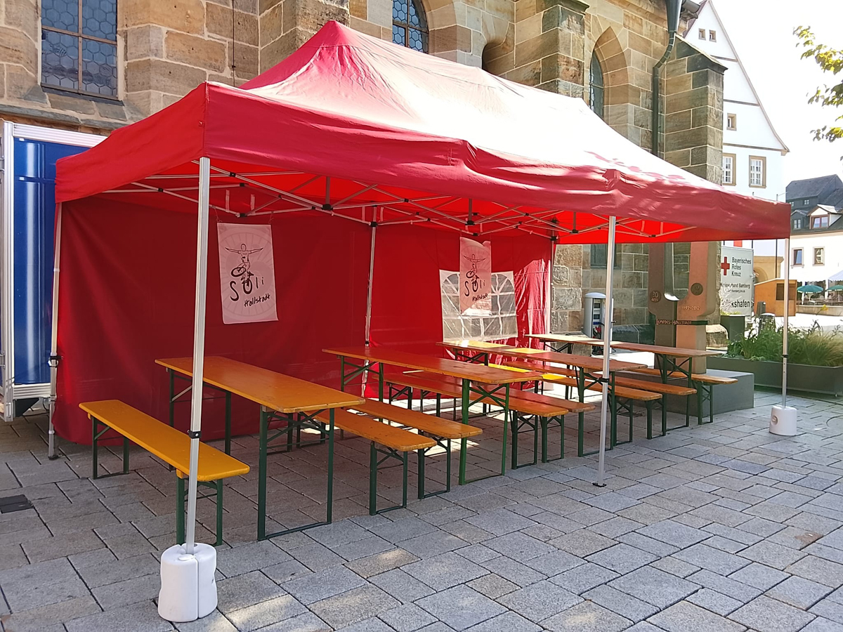 Selbstverständlich war die Solidarität Hallstadt e. V. bei der Hallstadter Kirchweih aktiv. Beim Stand der Soli Hallstadt gab es zahlreiche gut-gekühlte Getränke, wie z. B. Wein, Aperol, Sekt, Wasser, Limo und Apfelschorle. Der Weinstand der Solidarität Hallstadt war täglich sehr gut besucht, was sich anhand der Stimmung vor Ort bemerkbar machte. Aber auch beim Kirchweih-Umzug waren viele Mitglieder der Solidarität Hallstadt mit dabei, um den Verein bestmöglich zu präsentieren. Vor dem offiziellen Umzug traf man sich bei der Familie Gasseter, um sich dort entsprechend auf den Kirchweih-Samstag einzustimmen. Die Solidarität Hallstadt bedankt sich bei den Organisatoren, den Helfer und den vielen Besuchern der Hallstadter Kirchweih 2025.
