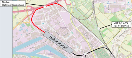 Bisher kommen die Güterzüge über ein Zufahrtsgleis in den Hafen, das im Bereich Coburger Straße von den Hauptgleisen abzweigt, nördlich des Bamberger Friedhofes verläuft, die Hallstadter Straße quert und schließlich den Bayernhafen Bamberg erreicht. Nachdem die Güterzüge zu Beginn die ICE-Gleise mehrfach überqueren müssen und dies laut Bahn unerwünscht ist – Abstimmungen mit dem ICE-Verkehr wären nötig – soll der Hafen neu von Norden her angebunden werden: Die Güterzüge fahren hierfür zunächst auf die Bahnstrecke Richtung Schweinfurt / Würzburg und verlassen diese südlich der Autobahn, in etwa hinter dem McDonalds-Restaurant. Die neuen Schienen führen dann südlich an der Autobahn entlang, biegen vor der Autobahnauffahrt „Bamberg-Hafen“ nach Süden ab und erreichen so den Hafenbahnhof von Norden. In den 1990ern Jahren, als die Pläne erstmals erarbeitet wurden, war von Kosten von rund 17 Millionen Deutsche Mark die Rede. Eine aktuelle Kostenübersicht gibt es im Projekt, das als „Planfeststellung für das Vorhaben Verkehrsprojekt Deutsche Einheit (VDE 8.1) ABS Nürnberg – Ebensfeld, ‚Planfeststellungsabschnitt Bamberg (PFA 22) – 3. Planänderungsverfahren 2021‘“ bezeichnet wird, nicht.