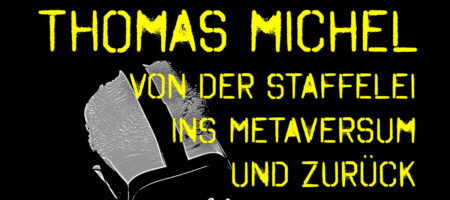 Nach einem Ausflug ins Metaversum beantwortet Thomas Michel auch die Frage, ob mit künstlicher Intelligenz generierte Bilder Kunst sein können auf beeindruckende Weise. Thomas Michel lebt und arbeitet in Bamberg und ist Mitglied im Berufsverband Bildender Künstlerinnen und Künstler Oberfranken. Er nimmt regelmäßig an Ausstellungen im In- und Ausland sowie an Kunstmessen teil.