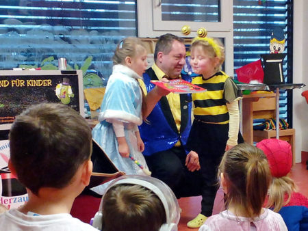 Besonders der Trick mit dem Seil ist spannend für die Kinder: Sie schreien rein, rufen den Zauberspruch „Hokus pokus 1,2,3“ und springen vor Aufregung auf, als das Seil plötzlich wieder ganz ist. Am Ende der Zaubershow (nach 45 Minuten) zaubern die Kinder gemeinsam mit Markus noch Bonbons aus einem Topf herbei – zu den Zutaten gehört neben Zucker auch eine Oma – oder war es doch Aroma?