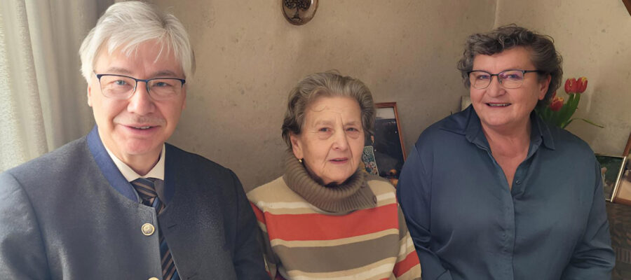 Im Titelbild: v.l. Erster Bürgermeister Rüdiger Gerst, Jubilarin Anna Birkel, weitere Bürgermeisterin Silvia Jung