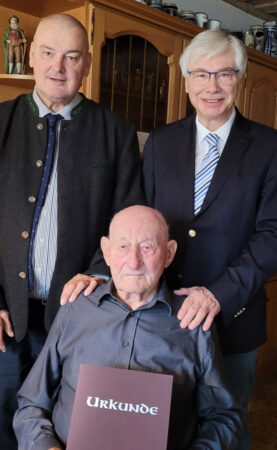 Für die Gemeinde wirkt er seit 28.09.2000, nunmehr ein Vierteljahrhundert, als langgedienter Feldgeschworener. Die Glückwünsche der Gemeinde überbrachten Erster Bürgermeister Rüdiger Gerst und 2. Bürgermeister Volker Pflaum.