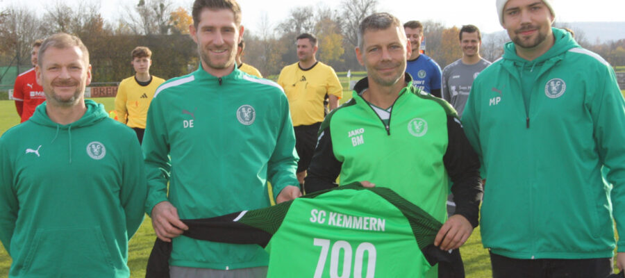 Vor der Partie des SC Kemmern gegen den FC Strullendorf (1:2) stand eine seltene Ehrung an. Das Kemmerner Urgestein Bernd Müller, der aktuell die 2. Mannschaft betreut, konnte auf 700 Spiele im grün-weißen Trikot seines Heimatvereins zurückblicken.