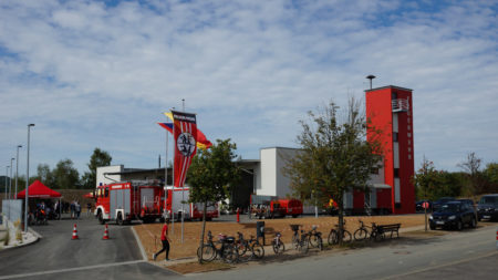 Vielfach hervorgeben wurde das Engagement der Feuerwehr im Rahmen der Bauarbeiten. Vom wöchentlichen Jour fixe auf der Baustelle bis hin zu viel Eigenleistung sowie einer finanziellen Beteiligung des Feuerwehrvereins, der die Ausstattung der Küche, die Möblierung der Schulungsräume und die Audio- und Videotechnik bezahlte – vieles wäre anders kaum vorstellbar gewesen. Keine Frage, dass Kommandant Bernhard Gries die Besucher stolz durch das neue Gebäude führte, nachdem auch offiziell die Schlüsselübergabe stattfand. Denn die Feuerwehr ist schon seit Ende August ins neue Feuerwehrhaus eingezogen.