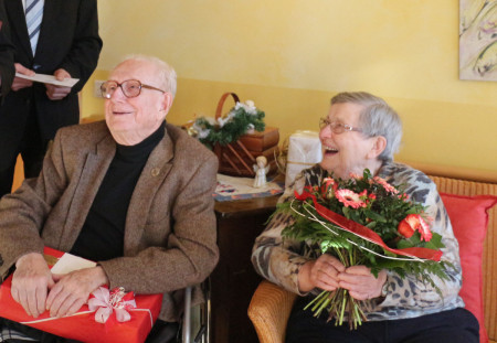 Steffi und Klaus Engelmann feierten ihr Eisernes Ehejubiläum – 65 Jahre sind sie nun schon verheiratet und haben seitdem viel zusammen erlebt. Natürlich war 1948 allein die Beschaffung des Hochzeitsessens ein Abenteuer für sich, wie Klaus Engelmann in Erinnerungen schwelgend erzählt. Engelmann selbst war jahrelang in Kemmern als Presseberichterstatter und OKR-Schriftführer aktiv.