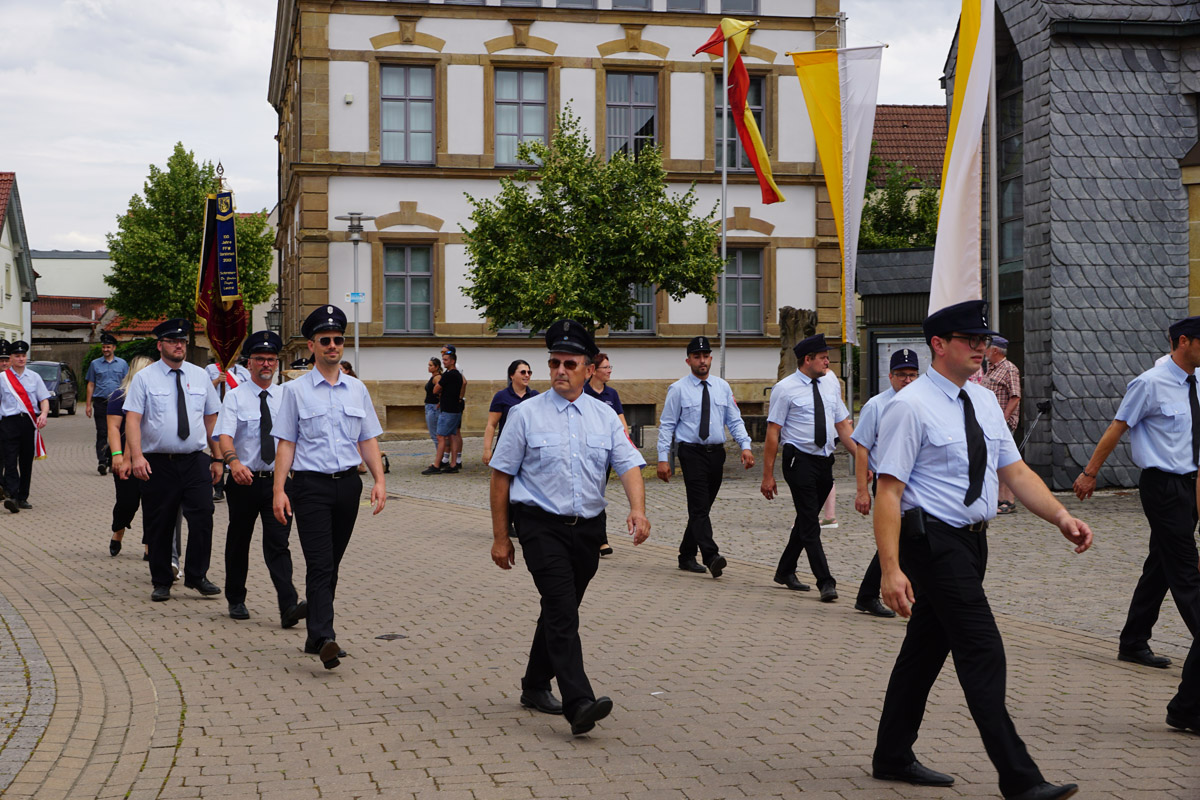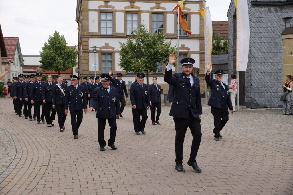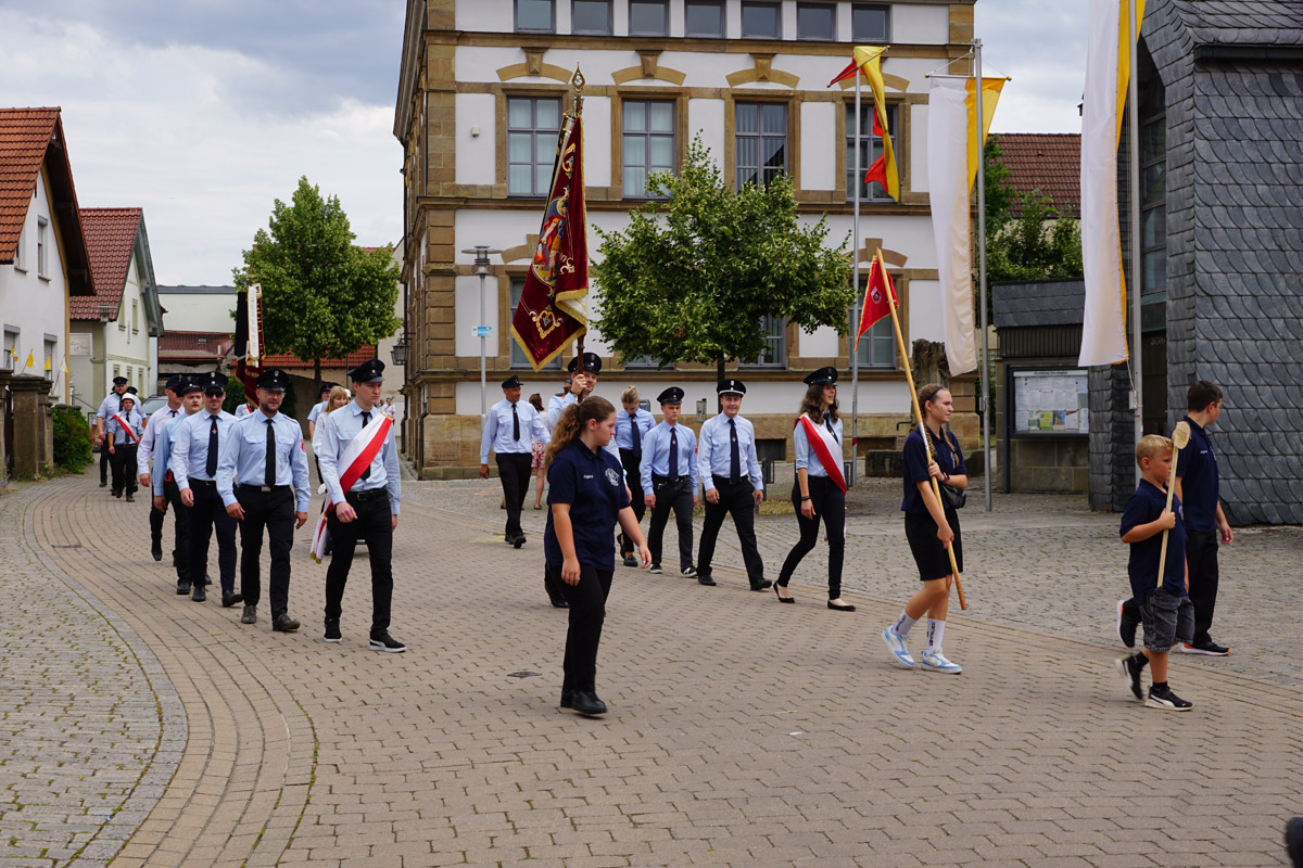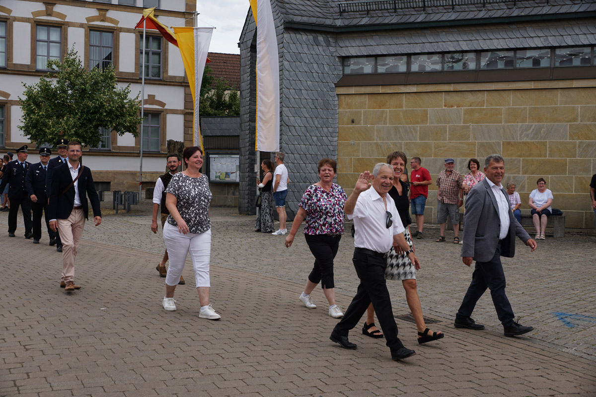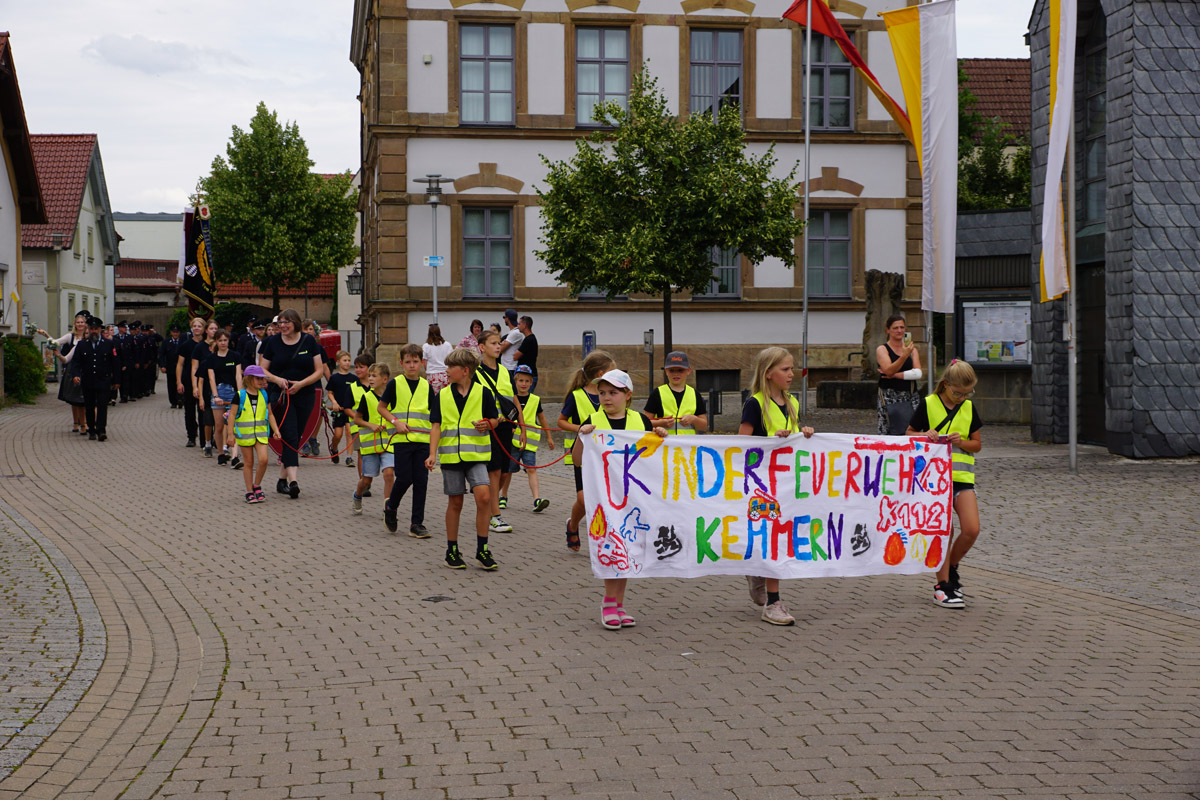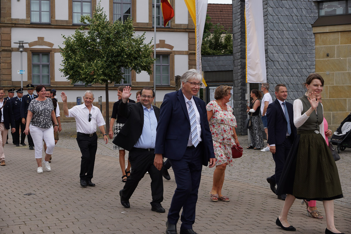 Zuvor war die Feuerwehr Kemmern mit 41 Gruppen, darunter vielen Wehren, Ortsvereinen und den beiden Kindertagesstätten in der Gemeinde, bei einem feierlichen Festumzug durch Kemmern gelaufen. Angeführt vom Musikverein Gundelsheim sorgten zudem die Blaskapelle Ebing, der Musikverein Hallstadt, der Musikverein Dankenfeld und die Jugendblaskapelle Burgwindheim für die musikalische Begleitung. Auch viele Ehrengäste waren gekommen, unter anderem die Schirmherrin und Bundestagsabgeordnete Emmi Zeulner, Bürgermeister Rüdiger Gerst, Landrat Johann Kalb mit seinem Stellvertreter Johannes Maciejonczyk, die Landtagsabgeordnete Melanie Huml und einige Bürgermeisterinnen und Bürgermeister aus der Umgebung. Und natürlich war auch die Führung der Landkreisfeuerwehr mit Kreisbrandrat Thomas Renner an der Spitze anwesend.