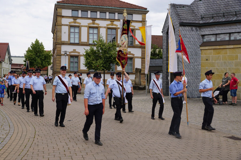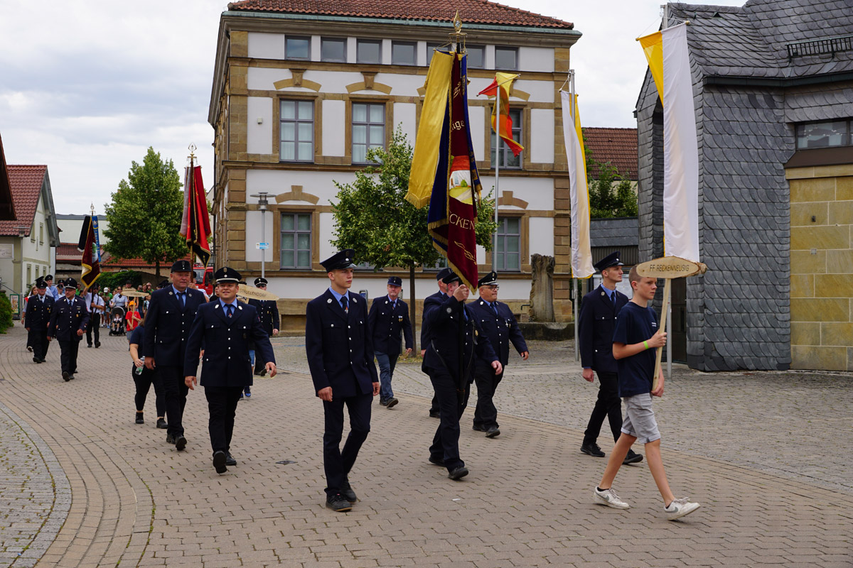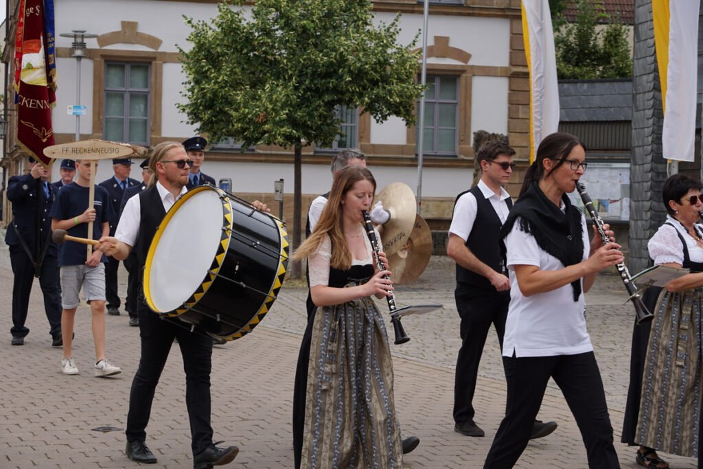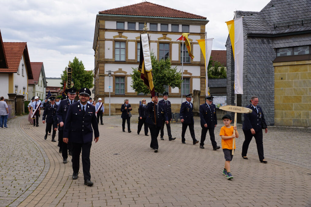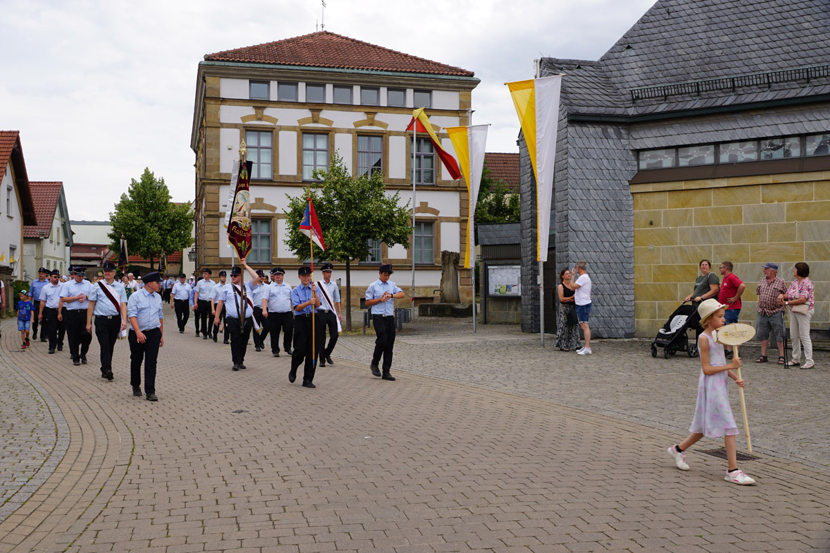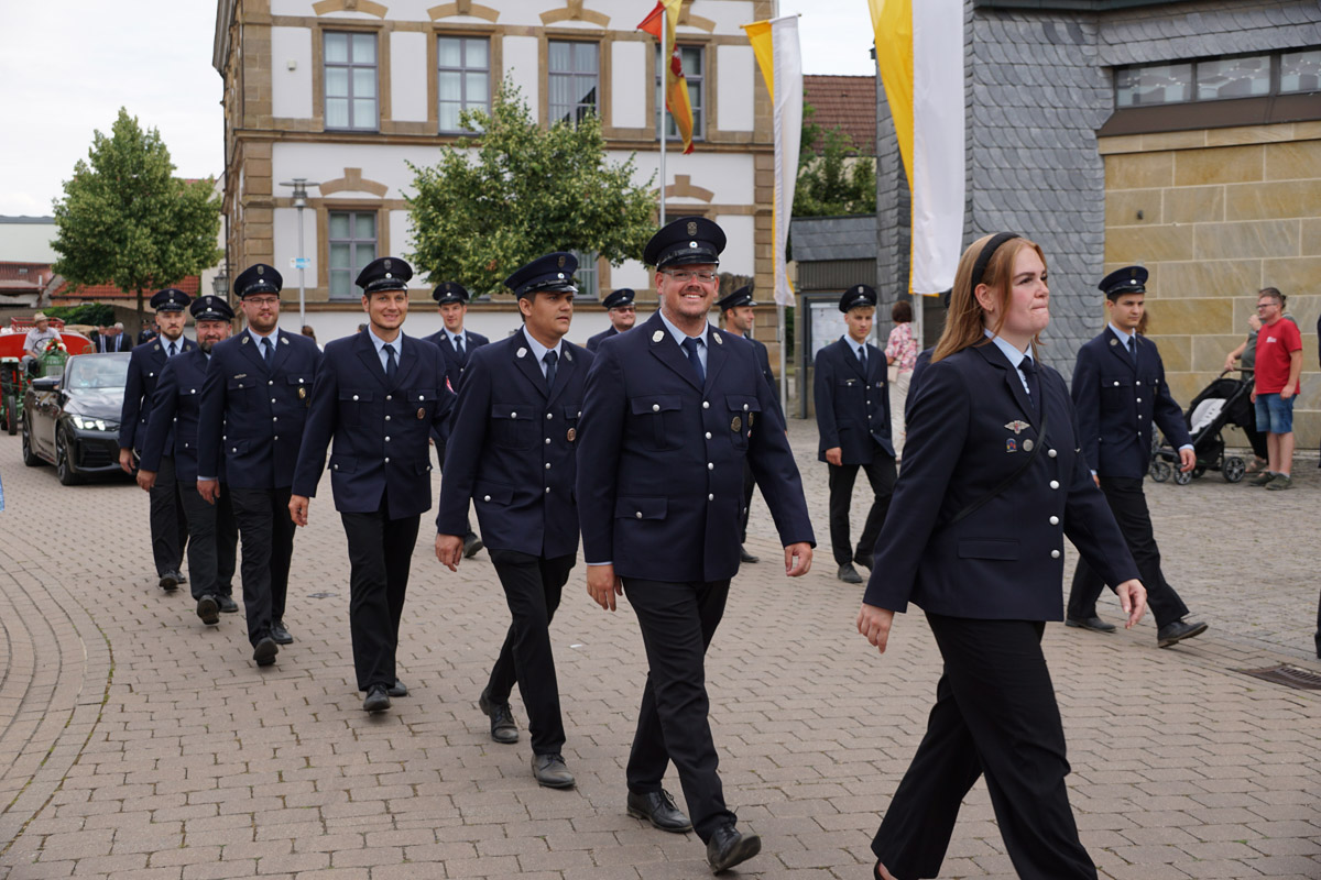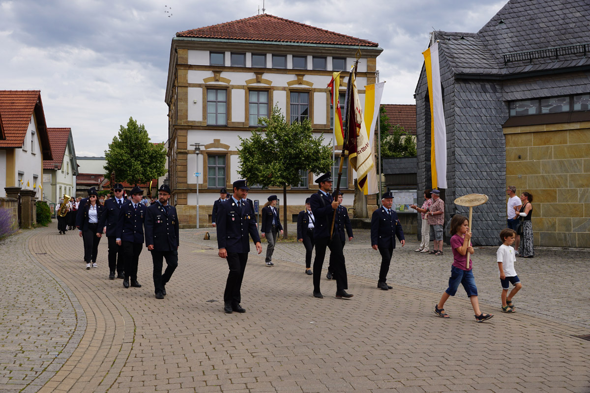 Zuvor war die Feuerwehr Kemmern mit 41 Gruppen, darunter vielen Wehren, Ortsvereinen und den beiden Kindertagesstätten in der Gemeinde, bei einem feierlichen Festumzug durch Kemmern gelaufen. Angeführt vom Musikverein Gundelsheim sorgten zudem die Blaskapelle Ebing, der Musikverein Hallstadt, der Musikverein Dankenfeld und die Jugendblaskapelle Burgwindheim für die musikalische Begleitung. Auch viele Ehrengäste waren gekommen, unter anderem die Schirmherrin und Bundestagsabgeordnete Emmi Zeulner, Bürgermeister Rüdiger Gerst, Landrat Johann Kalb mit seinem Stellvertreter Johannes Maciejonczyk, die Landtagsabgeordnete Melanie Huml und einige Bürgermeisterinnen und Bürgermeister aus der Umgebung. Und natürlich war auch die Führung der Landkreisfeuerwehr mit Kreisbrandrat Thomas Renner an der Spitze anwesend.