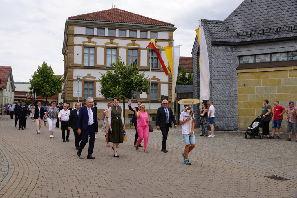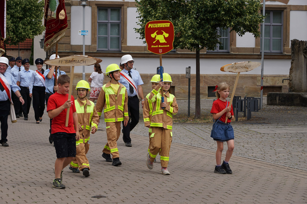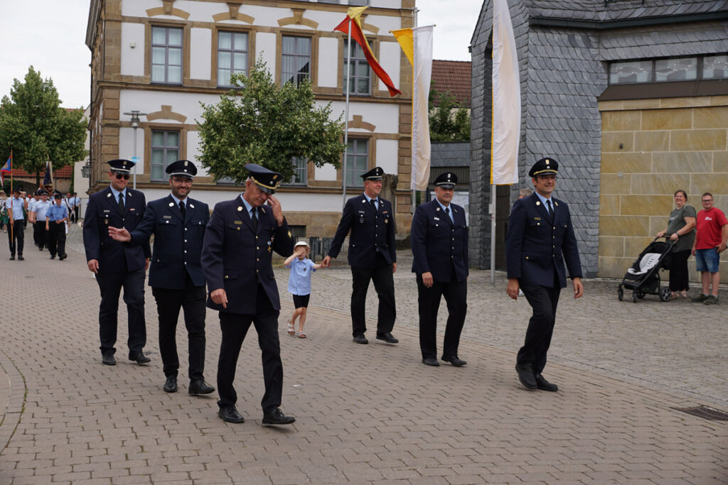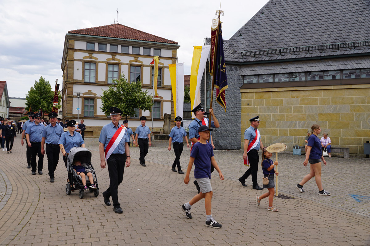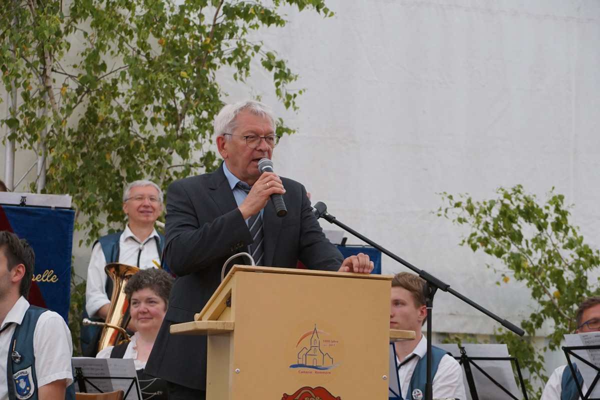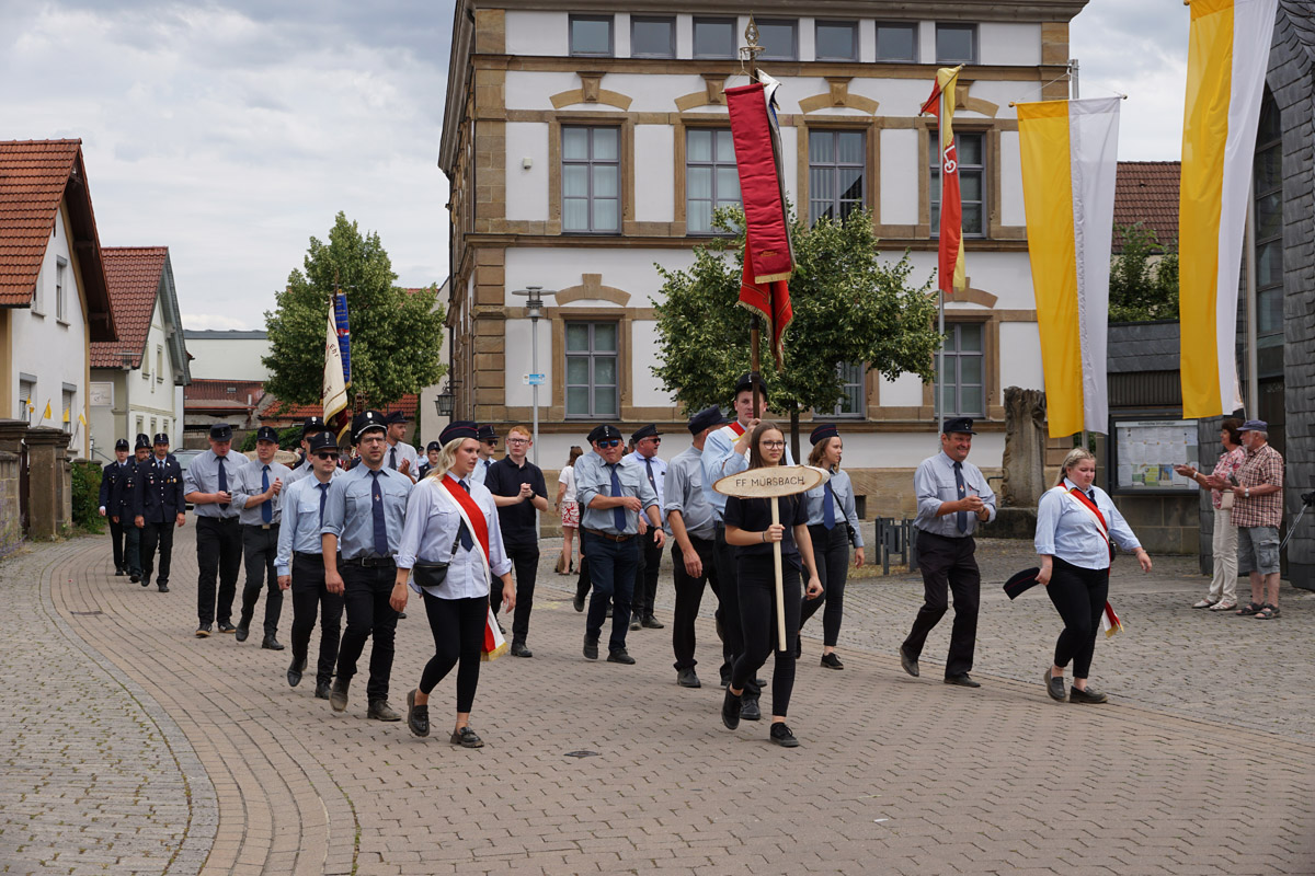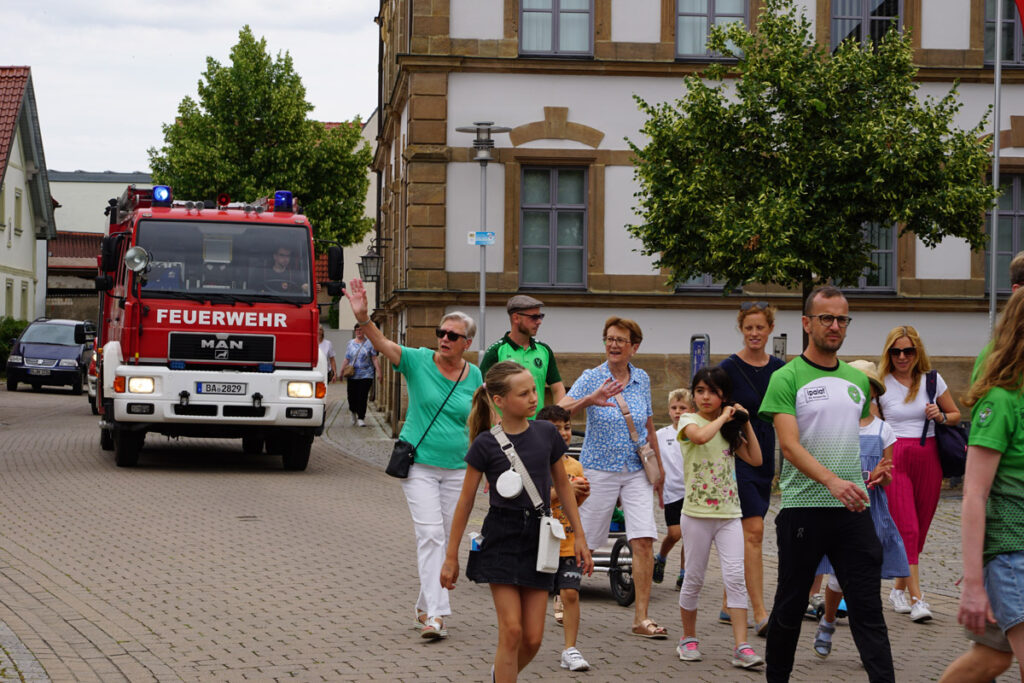Zuvor war die Feuerwehr Kemmern mit 41 Gruppen, darunter vielen Wehren, Ortsvereinen und den beiden Kindertagesstätten in der Gemeinde, bei einem feierlichen Festumzug durch Kemmern gelaufen. Angeführt vom Musikverein Gundelsheim sorgten zudem die Blaskapelle Ebing, der Musikverein Hallstadt, der Musikverein Dankenfeld und die Jugendblaskapelle Burgwindheim für die musikalische Begleitung. Auch viele Ehrengäste waren gekommen, unter anderem die Schirmherrin und Bundestagsabgeordnete Emmi Zeulner, Bürgermeister Rüdiger Gerst, Landrat Johann Kalb mit seinem Stellvertreter Johannes Maciejonczyk, die Landtagsabgeordnete Melanie Huml und einige Bürgermeisterinnen und Bürgermeister aus der Umgebung. Und natürlich war auch die Führung der Landkreisfeuerwehr mit Kreisbrandrat Thomas Renner an der Spitze anwesend.