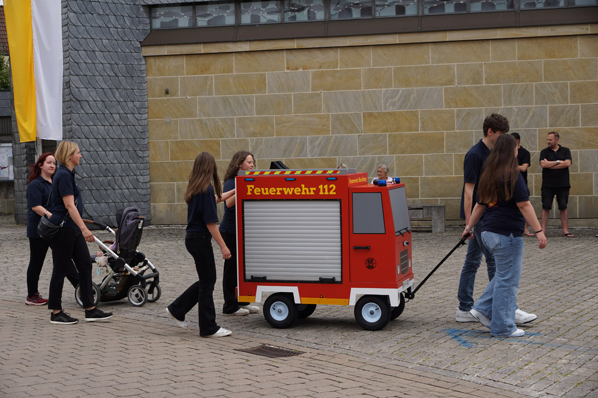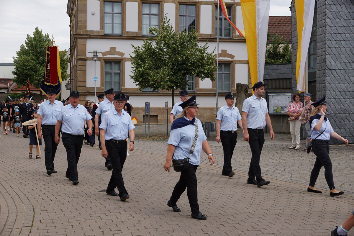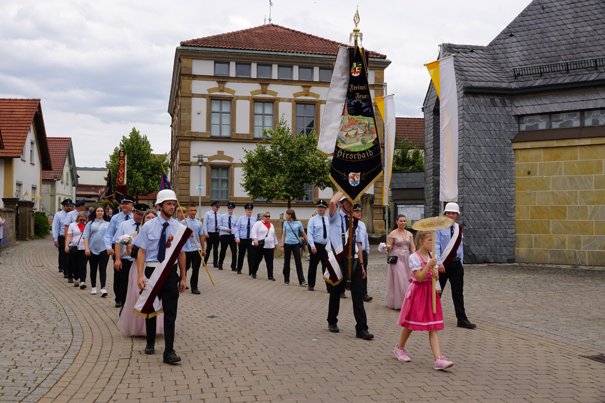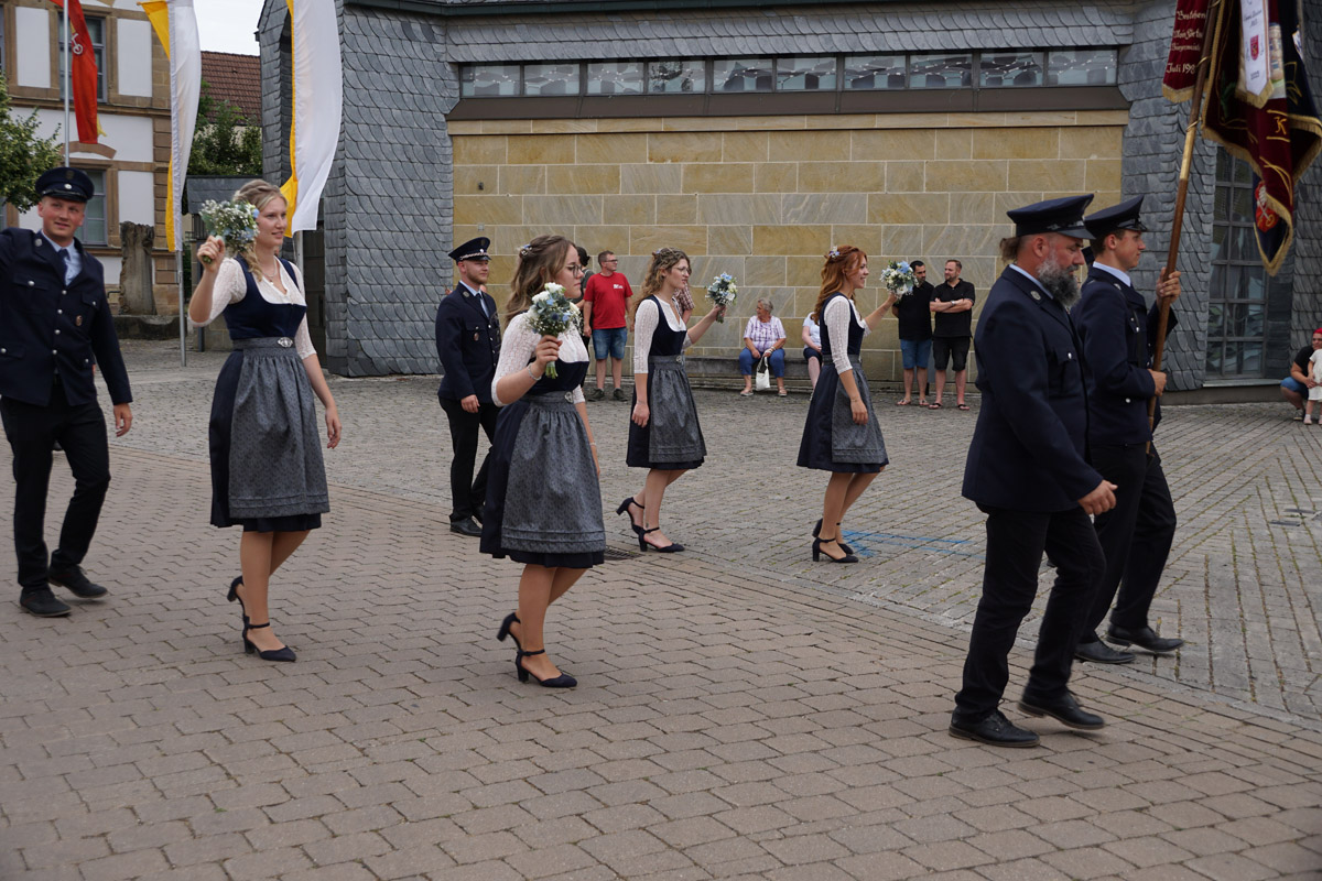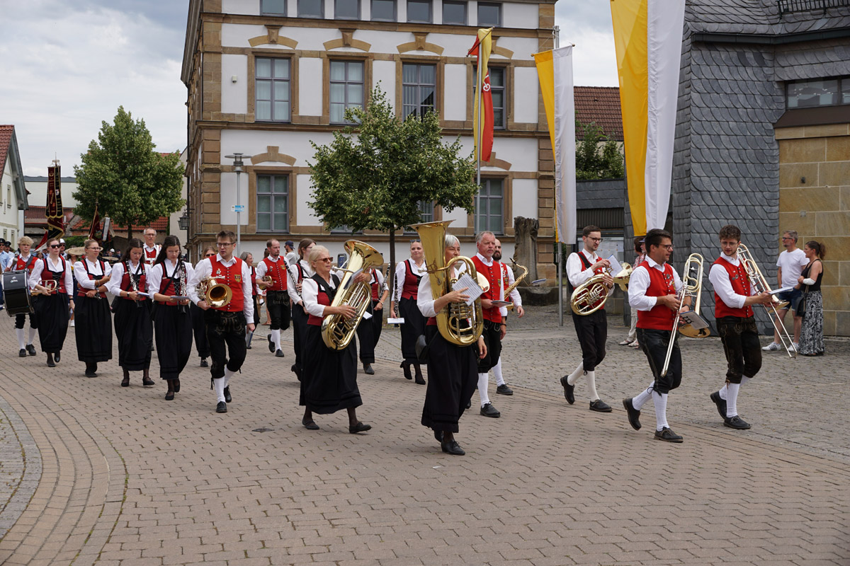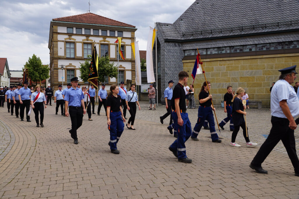 Zuvor war die Feuerwehr Kemmern mit 41 Gruppen, darunter vielen Wehren, Ortsvereinen und den beiden Kindertagesstätten in der Gemeinde, bei einem feierlichen Festumzug durch Kemmern gelaufen. Angeführt vom Musikverein Gundelsheim sorgten zudem die Blaskapelle Ebing, der Musikverein Hallstadt, der Musikverein Dankenfeld und die Jugendblaskapelle Burgwindheim für die musikalische Begleitung. Auch viele Ehrengäste waren gekommen, unter anderem die Schirmherrin und Bundestagsabgeordnete Emmi Zeulner, Bürgermeister Rüdiger Gerst, Landrat Johann Kalb mit seinem Stellvertreter Johannes Maciejonczyk, die Landtagsabgeordnete Melanie Huml und einige Bürgermeisterinnen und Bürgermeister aus der Umgebung. Und natürlich war auch die Führung der Landkreisfeuerwehr mit Kreisbrandrat Thomas Renner an der Spitze anwesend.