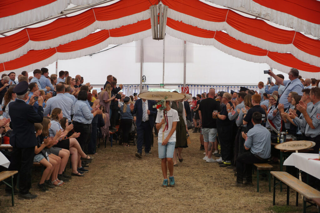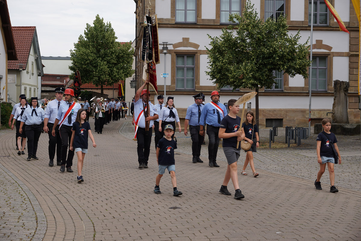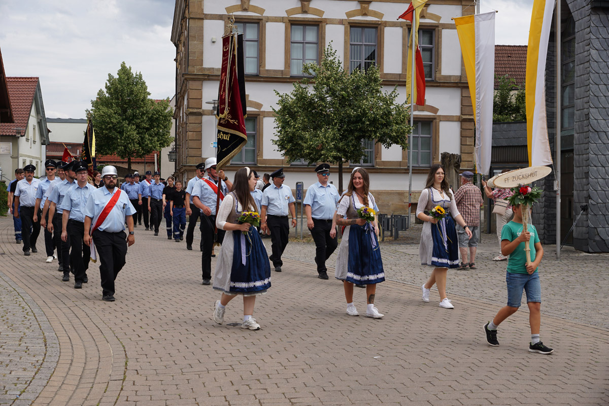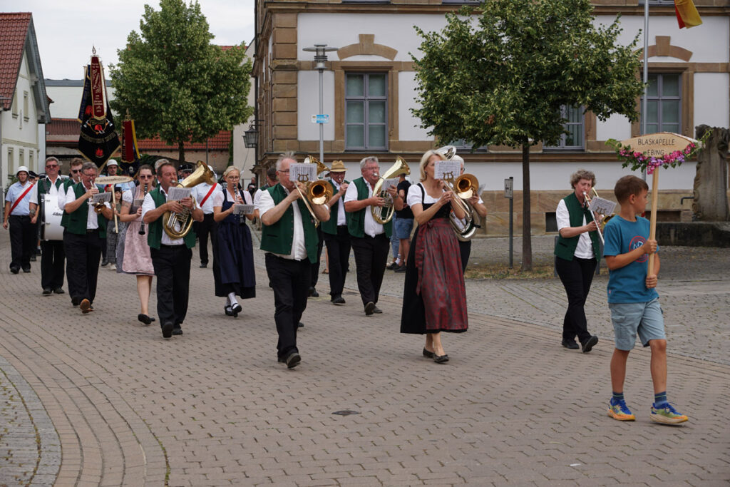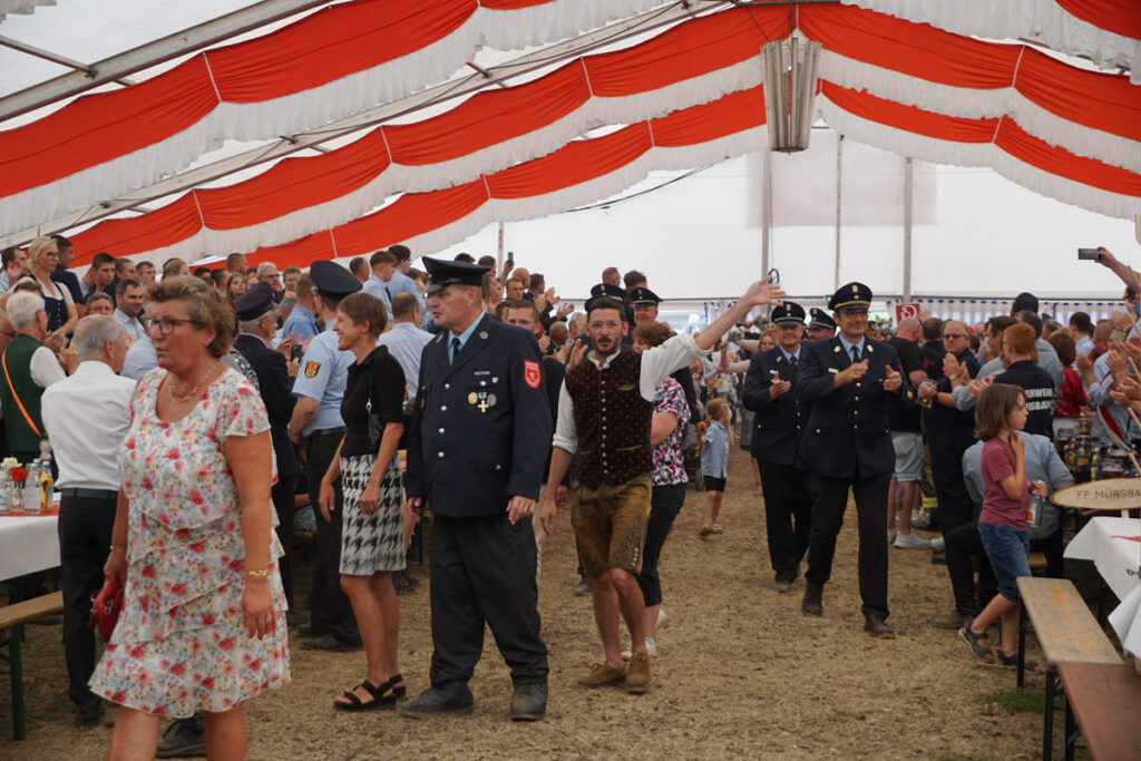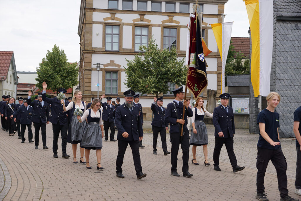 Für Musik auf der Bühne sorgte am Festsonntag die Blaskapelle Ützing. Bereits am Vormittag zelebrierte Pfarrer Philipp Janek den Festgottesdienst. Und einen Tag zuvor hatten abends „Die Stadelhofner“ auf der Bühne im Zelt unterhalten, am Vormittag fand ein Jugendleistungsmarsch der Feuerwehren aus dem Landkreis Bamberg statt – mit 62 Mannschaften.