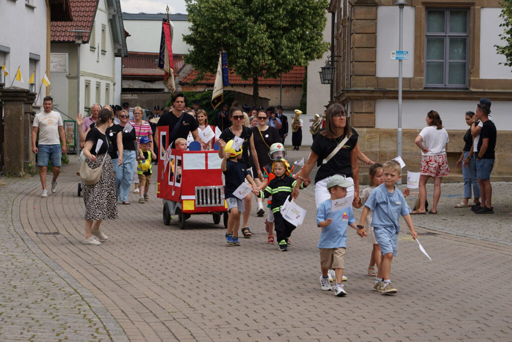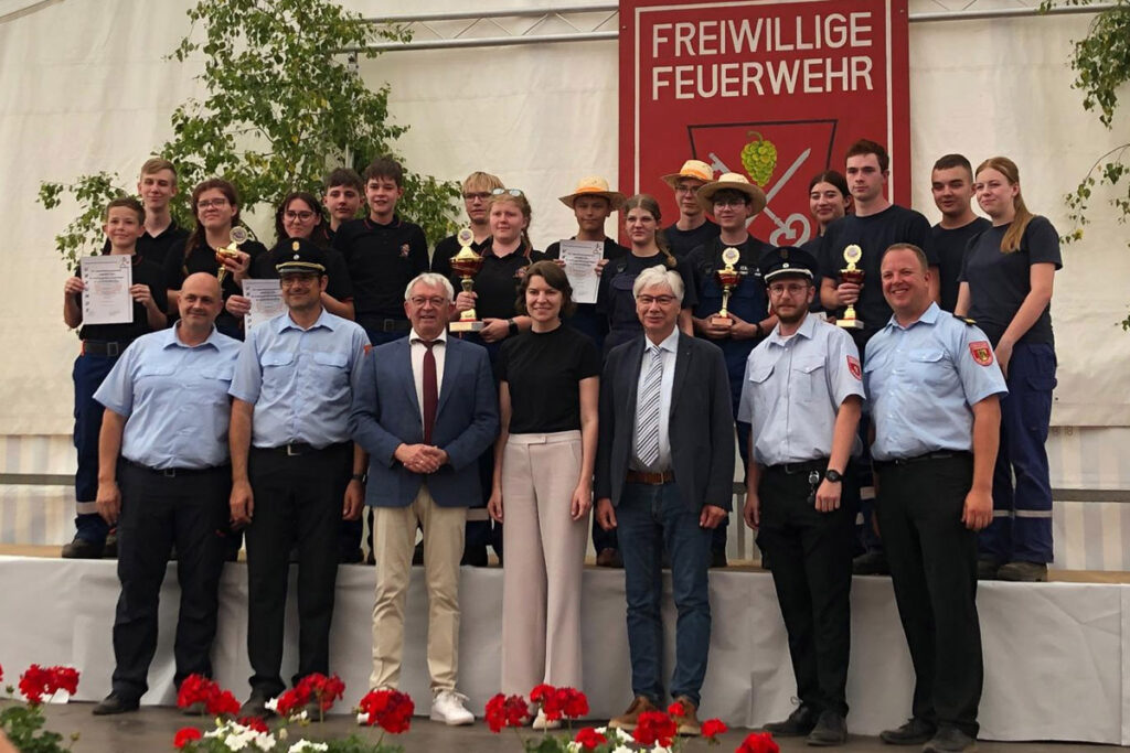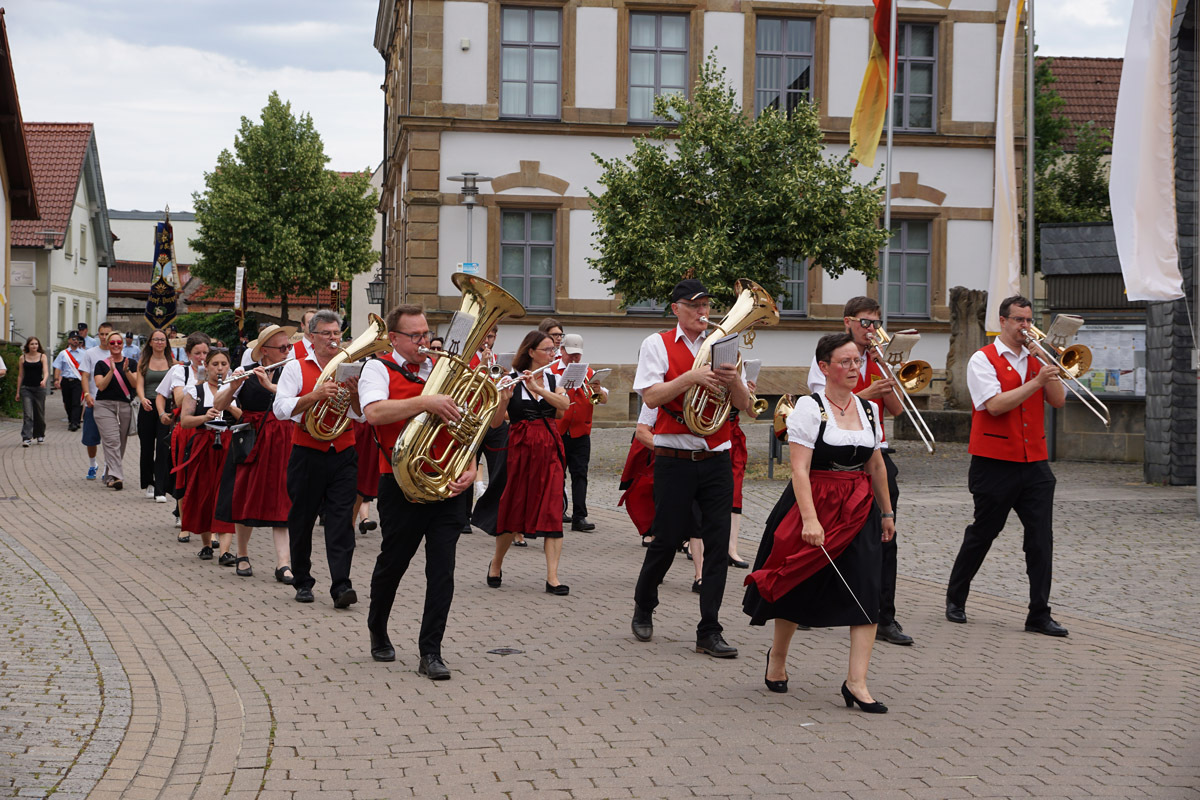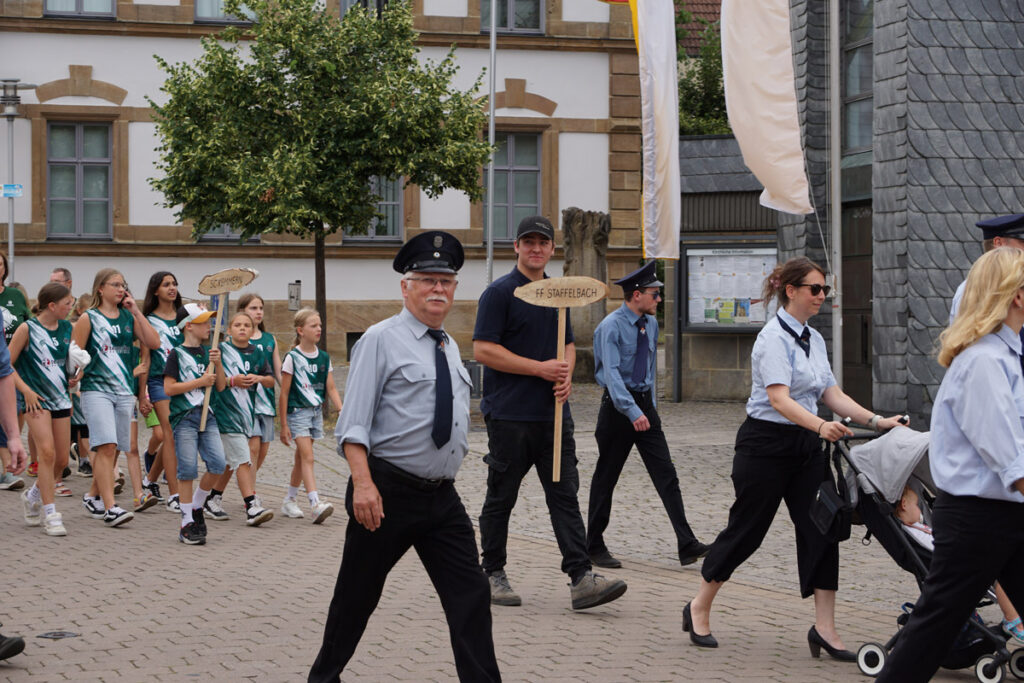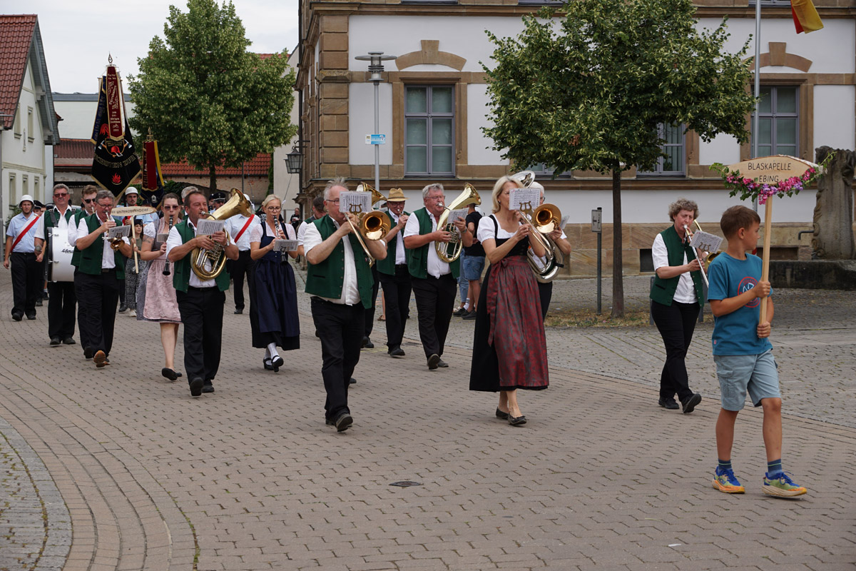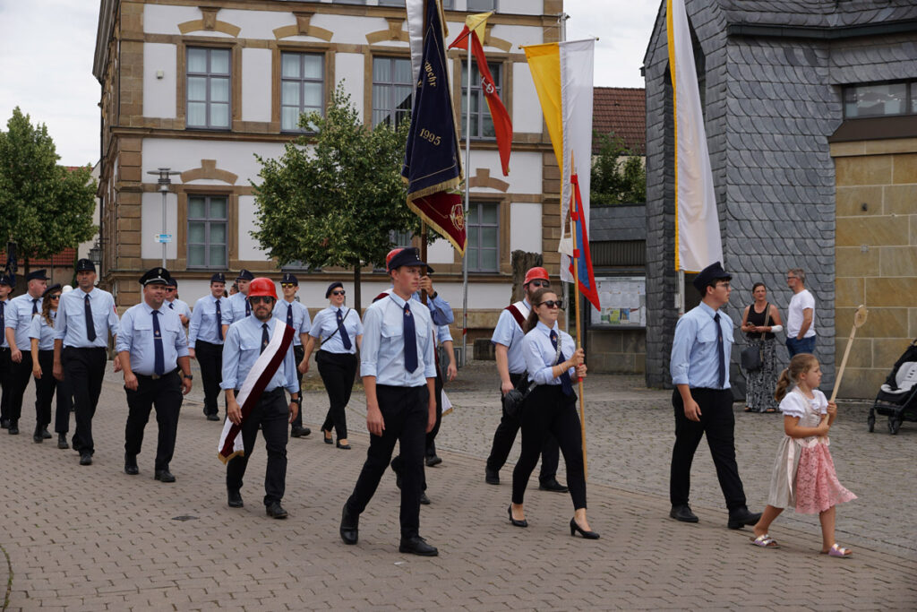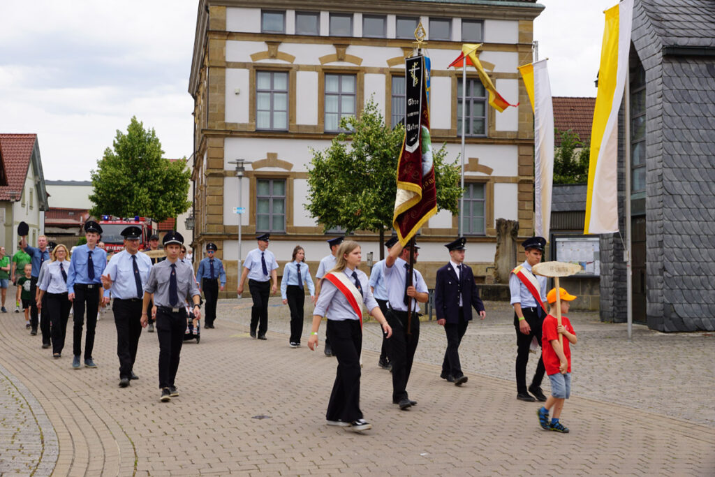Für Musik auf der Bühne sorgte am Festsonntag die Blaskapelle Ützing. Bereits am Vormittag zelebrierte Pfarrer Philipp Janek den Festgottesdienst. Und einen Tag zuvor hatten abends „Die Stadelhofner“ auf der Bühne im Zelt unterhalten, am Vormittag fand ein Jugendleistungsmarsch der Feuerwehren aus dem Landkreis Bamberg statt – mit 62 Mannschaften.