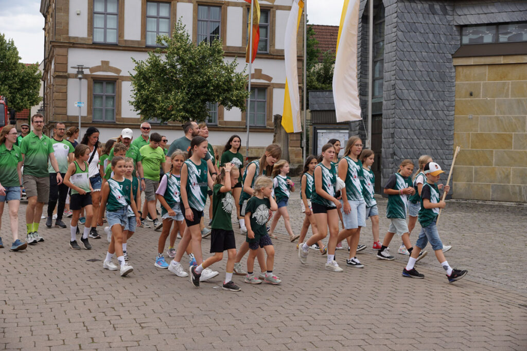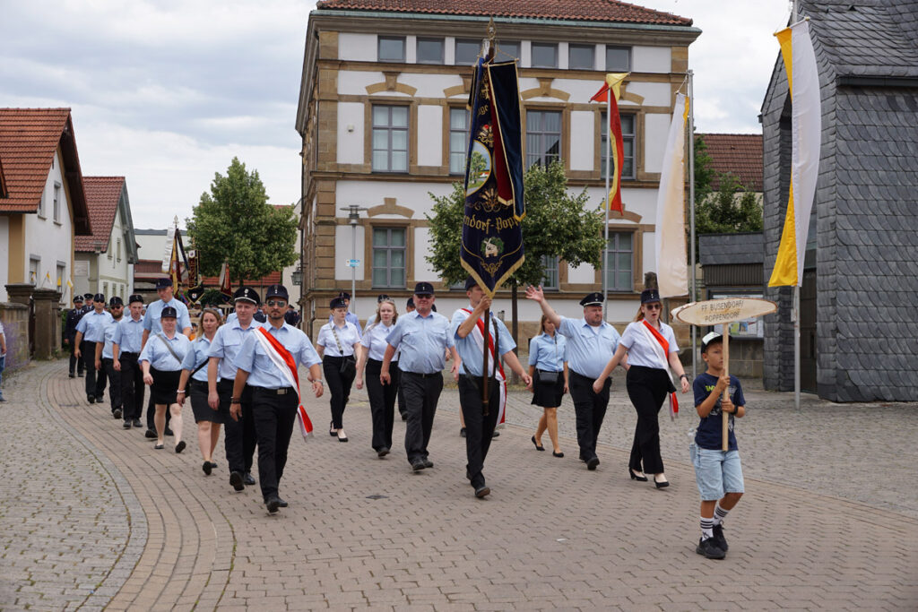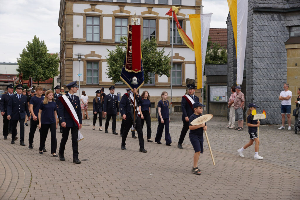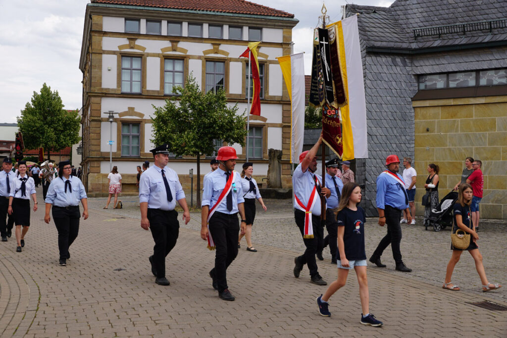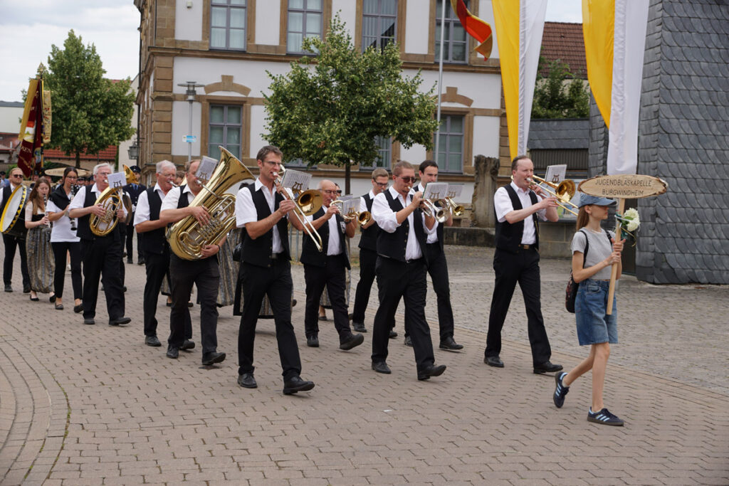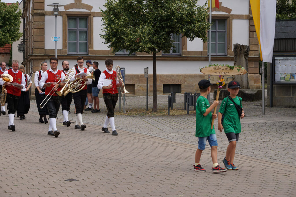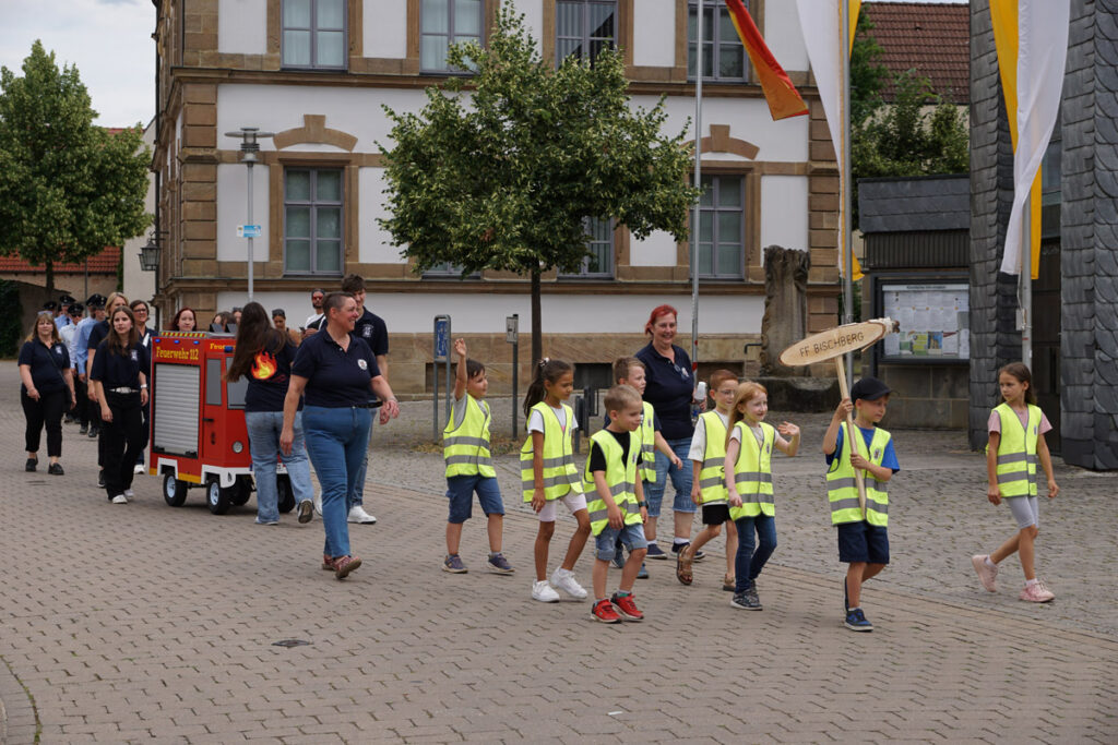 Für Musik auf der Bühne sorgte am Festsonntag die Blaskapelle Ützing. Bereits am Vormittag zelebrierte Pfarrer Philipp Janek den Festgottesdienst. Und einen Tag zuvor hatten abends „Die Stadelhofner“ auf der Bühne im Zelt unterhalten, am Vormittag fand ein Jugendleistungsmarsch der Feuerwehren aus dem Landkreis Bamberg statt – mit 62 Mannschaften.