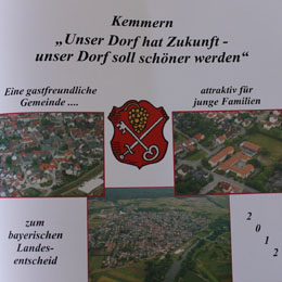 Im weiteren Verlauf der Sitzung verteilte Gerst die druckfrische neue Broschüre, die für die Bewertungskommission des kommenden Landeswettbewerbs erstellt wurde. Der eng bemessene Zeitplan und die bisherigen Planungen wurden vorgestellt und besprochen. Schautafeln, die Kemmern vor und nach der Ortskernsanierung dokumentieren sollen, werden noch gestaltet. Am wichtigsten werde sein, bei den Präsentationen die charakteristischen Merkmale punktgenau darzubieten, Kemmern mit allen Sinnen erlebbar zu machen. Nachrichten am Ort wird über die Vorbereitungen und den Besuch der Bewertungskommission in jeweils eigenen Artikel berichten.