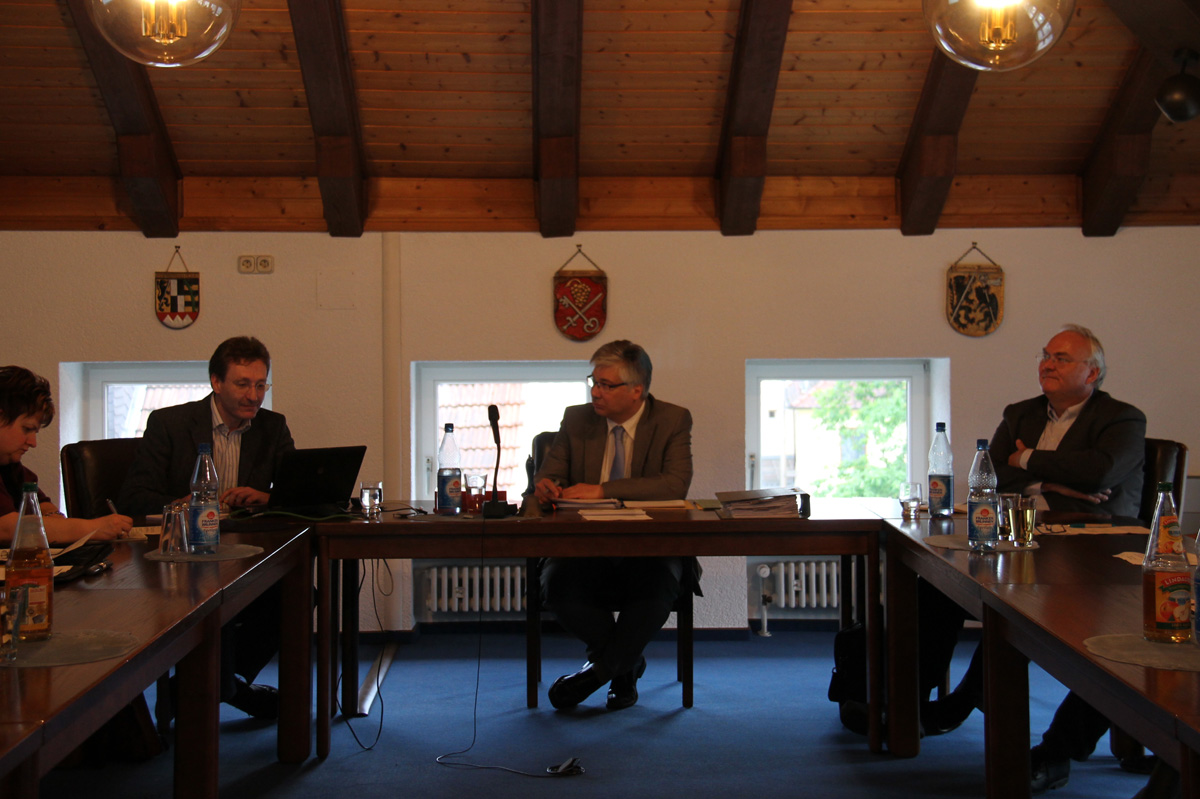 Martin Eckert (links) erläutert dem Gemeinderat die aktuellen Planungen.