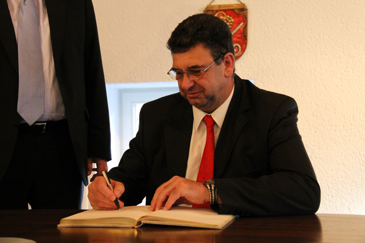 Im Anschluss durften sich die verabschiedeten Gemeinderäte, wie Elmar Dorsch, in das goldene Buch der Gemeinde eintragen. Die Ehepartner bekamen einen Blumenstrauß überreicht.