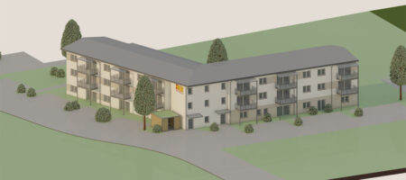 Im Titelbild: So sieht das Gebäude für das betreute Wohnen und die Tagespflege nach der aktuellen Planung aus. Grafik: Architekt Schlund