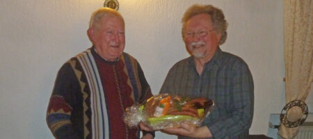 Kassier Andreas Görtler, konnte in seiner Kasse ein leichtes Plus verzeichnen. Engelmann dankte ihn für seine nicht alltägliche, 50-jährige Tätigkeit als Kassier, die er am 26.11.1972 übernommen hat und überreichte einen Brotzeitkorb.