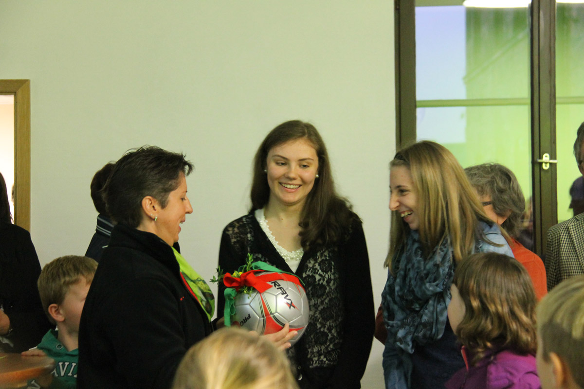 Ein kleines Dankeschön für große Initiative: Kathrin Distler bedankte sich bei Hans-Dieter Ruß.
