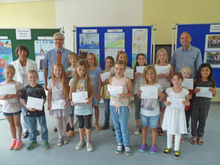 Beim Jahresabschluss der Kinder in der Schule erhielten jeweils die drei besten Maler aus jeder Klasse Preise durch die beiden Bürgermeister Rüdiger Gerst und Hans-Dieter Ruß überreicht. Rüdiger Gerst dankte der Schulleiterin Gisela Koschwitz, sowie allen Lehrerinnen für ihr Engagement. Die Schule und der Kindergarten werden ebenfalls im Jubiläumsjahr mit eingebunden. Im März soll zusammen mit der Schule und dem Kindergarten eine Streuobstwiese mit historischen Obstsorten, einigen Hopfenpflanzen und einem Insektenhotel entstehen. Ebenso werden die Kinder der beiden Einrichtungen am Festzug am 02.07.2017 teilnehmen.