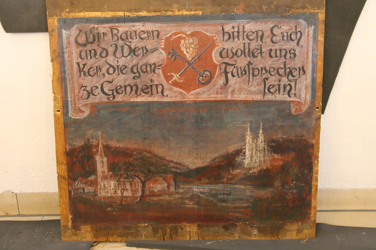Unregelmäßige Ränder und nicht zentrierte Bemalung werden den Wiedereinbau in die neue Brüstung erschweren.