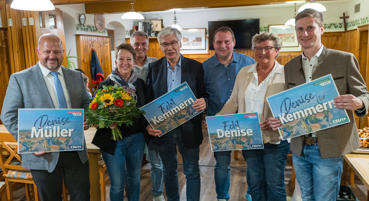 CSU-Ortsvorsitzender Tobias Wagner schlug im Namen der CSU-Vorstandschaft Denise Müller als Kandidatin vor und erhielt sofort breite Zustimmung. Die 50-Jährige lebt und arbeitet seit Jahrzehnten in Kemmern, ist Mutter von zwei Kindern und mit einem Kemmerner verheiratet. Als ausgebildete Verwaltungsfachangestellte ist sie seit vielen Jahren in der Gemeindeverwaltung Kemmern tätig und bringt damit ihre große fachliche Expertise direkt mit. Darüber hinaus ist sie Vorsitzende des VdK Kemmern und stellvertretende CSU-Ortsvorsitzende. Dazu arbeite nebenbei Denise Müller in der Gastro und wisse, wie man auf Menschen zugehe.