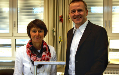 Rektorin Gisela Koschwitz bekommt für die Schule eine Dokumentenkamera.