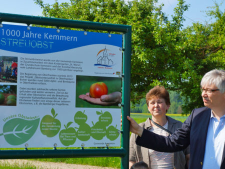 Die Streuobstwiese, die in Zusammenarbeit mit den Kreisfachberatern aus dem Landratsamt Bamberg angelegt wurde, erfüllt gleich mehrere Funktionen. Natürlich wird sie eine Anlaufstelle für Insekten aller Art sein – und im Sommerferienprogramm bauen die Kindern zudem ein Insektenhotel, das insbesondere Wildbienen anlocken soll. Die Wiese erinnert aber auch an die Geschichte Kemmerns. „Ein Blick in die Vergangenheit zeigt, dass es rund um Kemmern einst viele Streuobstwiesen gab“, erklärte Bürgermeister Rüdiger Gerst bei der offiziellen Einweihung, zu der auch die Kinder erneut gekommen waren.