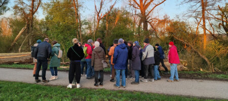 Im Titelbild: Vogelstimmenexkursion in den Kemmerner Mainauen 2026. Foto: Anne Schmitt