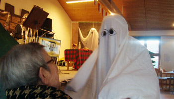 Zwischenzeitlich huschte ein um Erlösung bittender Burggeist (Titelfoto) durch die feiernden und tanzenden Frauen. Das lange Rätselraten gewann zu guter Letzt die Mesnerin. Keiner hätte die in Kemmern wohlbekannte Person hinter dieser Maske vermutet. Lange noch feierten die etwa 80 Frauen bei gutem Essen und Trinken und der schwungvollen Musik von „Melodas“.