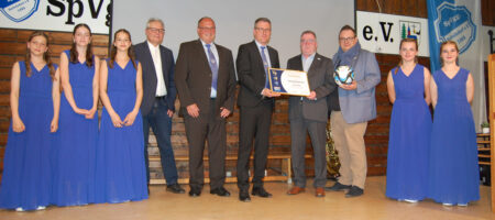 Im Titelbild: Der Verein bekam vom BLSV die Auszeichnung Goldene Raute mit Ähre verliehen.