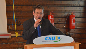 Es sei eine historische Tatsache, so Scheerbaum, dass an beidem, dem Wiederaufbau und der Wiedervereinigung, die CSU maßgeblich beteiligt war. Schließlich trage sie seit Jahren Regierungsverantwortung. Damit sei ein Ziel der CSU-Gründergeneration umfassend erreicht. Auch die weiteren Ziele der CSU seien noch immer gültig. Nach dem wirtschaftlichen Aufstieg unseres Landes gelte es nun, die teilweise negativen Auswirkungen der globalisierten Wirtschaft zu bekämpfen. Niedriglöhne, soziale Verwerfungen, teilweise Ausbeutung der Dritte-Welt-Länder und zügelloser Kapitalismus mit seinen Folgen für Mensch und Umwelt seien, die Probleme vor denen wir heute stünden. Herausforderungen, die es für uns und unsere Abgeordneten zu meistern gelte. Auch wenn dies ein langwieriger Prozess sei, dürfe man nicht müde werden, ständig daran zu arbeiten. Ansätze seien auf den Weg gebracht, die ein oder andere Maßnahme zeige bereits Wirkung, aber endgültige Lösungen für alle unsere Probleme scheinen in weiter Ferne.