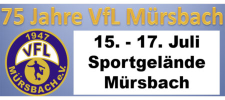 Der Samstagabend wird ab 21 Uhr mit Barbetrieb und DJ-Musik im Festzelt durch den bekannten DJ Valdemossa abgeschlossen. Der Eintritt ist frei. Sonntagmorgen wird um 8:45 Uhr mit einem Festgottesdienst in der Pfarrkirche St. Sebastian eingeläutet. Ab 10:30 Uhr wird die Mürsbacher Blasmusik den Weißwurstfrühschoppen zünftig begleiten. Die Vorstandschaft und der Vereinsausschuss hoffen auf einen guten Besuch bei gutem Wetter zu ihrem Jubiläum, zu dem bestens für das leibliche Wohl gesorgt ist. Neben der laut „Fußballmagazin anpfiff“ besten Bratwurst der Liga, gibt es Steaks, Pizza sowie selbst gebackene Torten und Kuchen zu genießen.