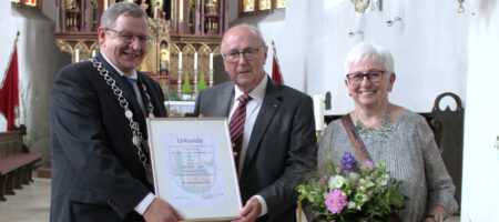 Im Titelbild: Erster Bürgermeister Hans-Jürgen Scheerbaum mit Ehrenbürger Gerhard Jäger und Ehefrau Sonngard Jäger