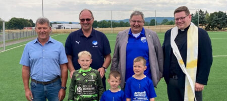 Am Sonntag, 13 .Juli, fand die offizielle Einweihung des neuen Kunstrasenspielfeldes statt. Neben den vielen Gästen durfte der 1. Vorsitzende Andreas Schmittwolf unter anderem Pfarrer Phillipp Janek, Bürgermeister Hans-Jürgen Scheerbaum, sowie den Kreisvorsitzenden des BLSV, Carsten Joneitis, herzlich willkommen heißen.