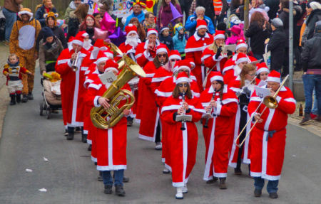 Ja ist denn heute schon Weihnachten? Nein, war doch gerade erst. Dennoch waren beim Faschingsumzug in Rattelsdorf massenweise Weihnachtsmänner zu sehen – verantwortlich: der Musikverein. Neben viel Partystimmung gab es beeindruckend konstruierte Faschingswagen, ein bisschen Lokal- und sogar Bundespolitik.