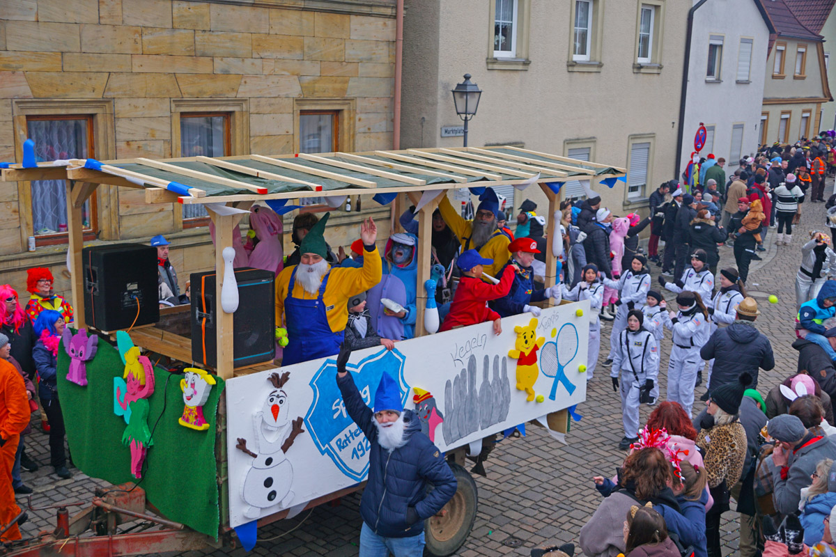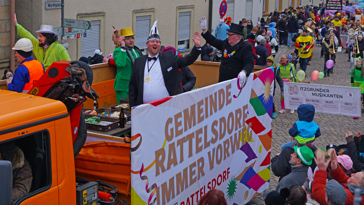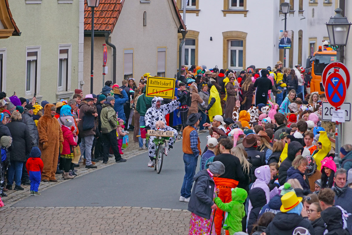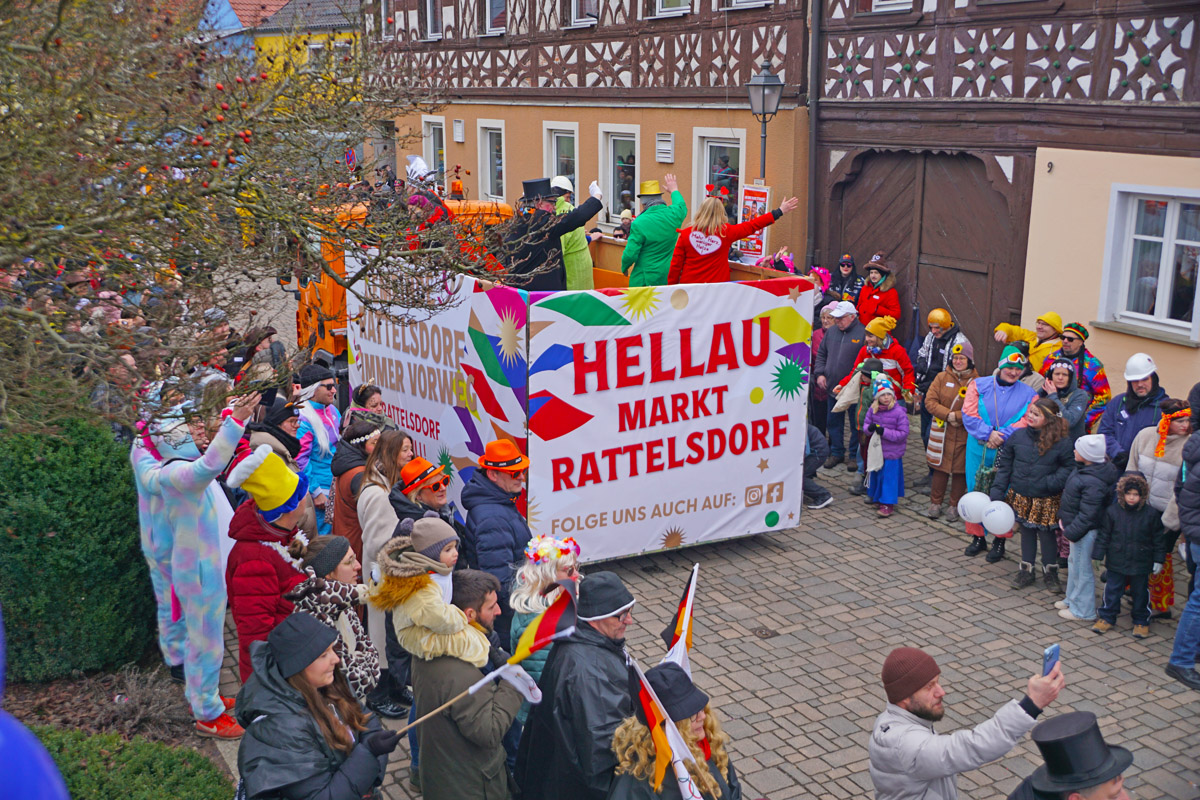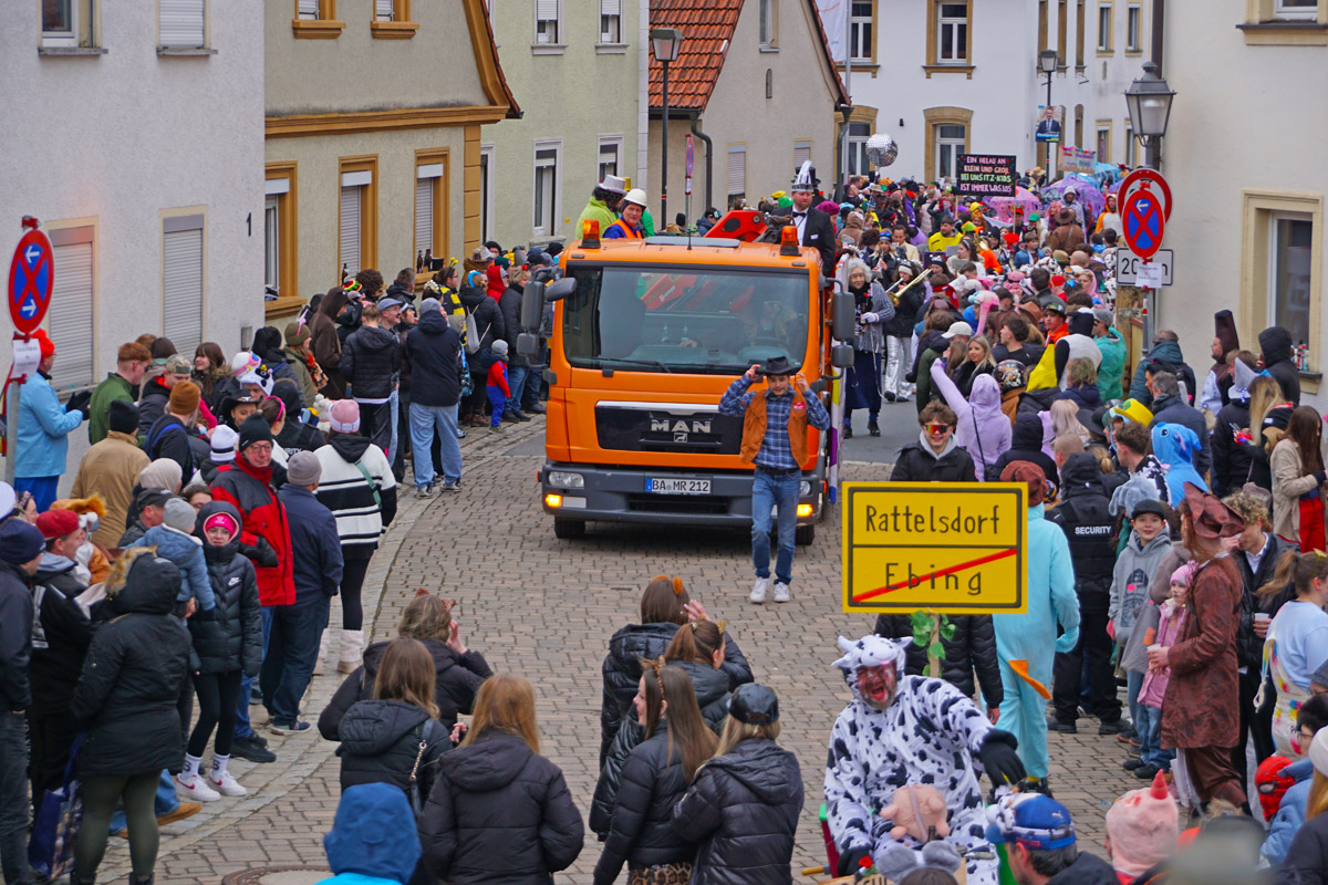 Kalt war’s dieses Jahr beim Rattelsdorfer Faschingsumzug. Vom Feiern ließ sich aber niemand abhalten – im ganzen Ort, vom Torhaus über den Marktplatz bis zum Sportplatz, wurde gefeiert. Mit dabei waren 43 Wägen und Fußgruppen. Auch ein lokales Thema fand sich beim Umzug wieder …