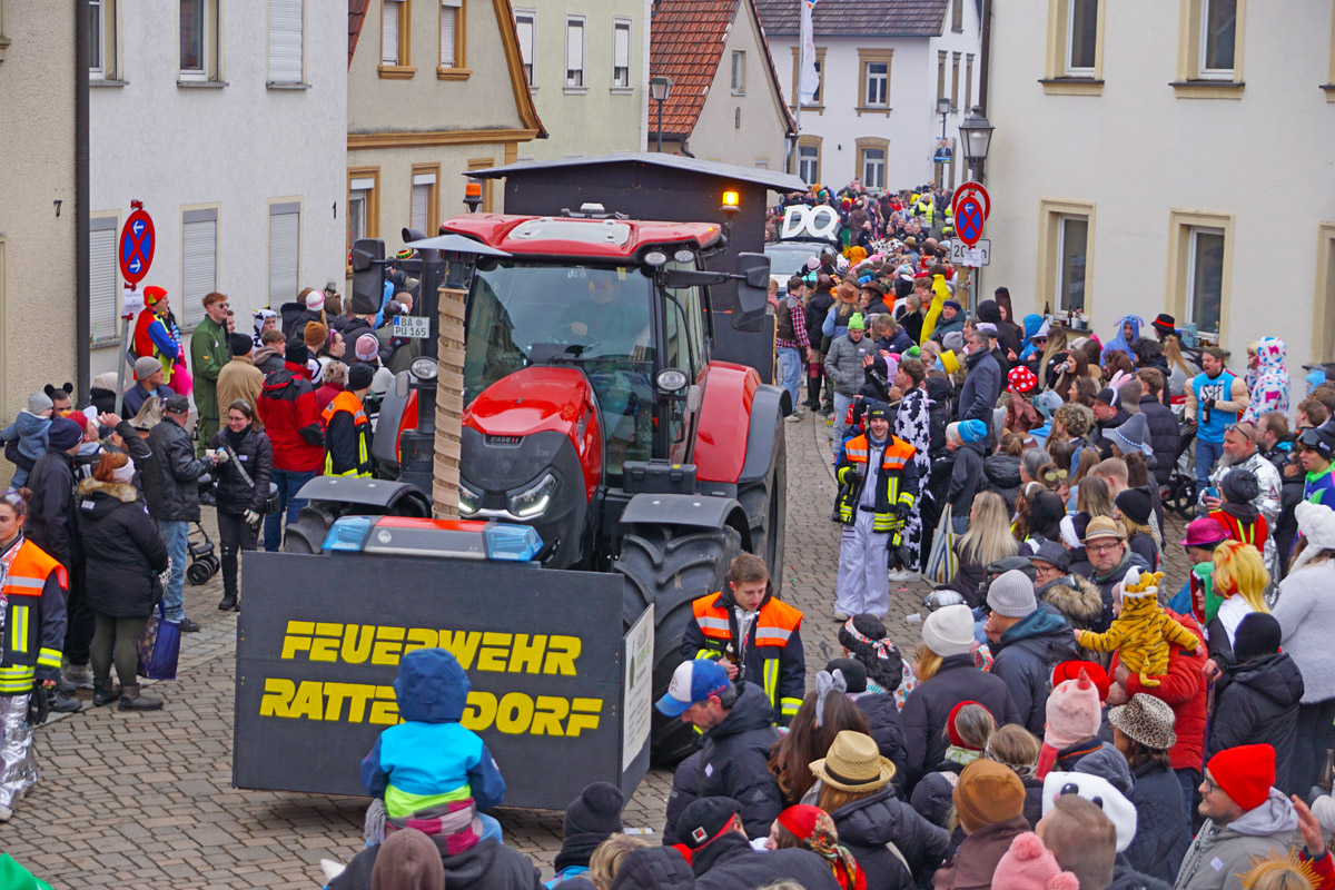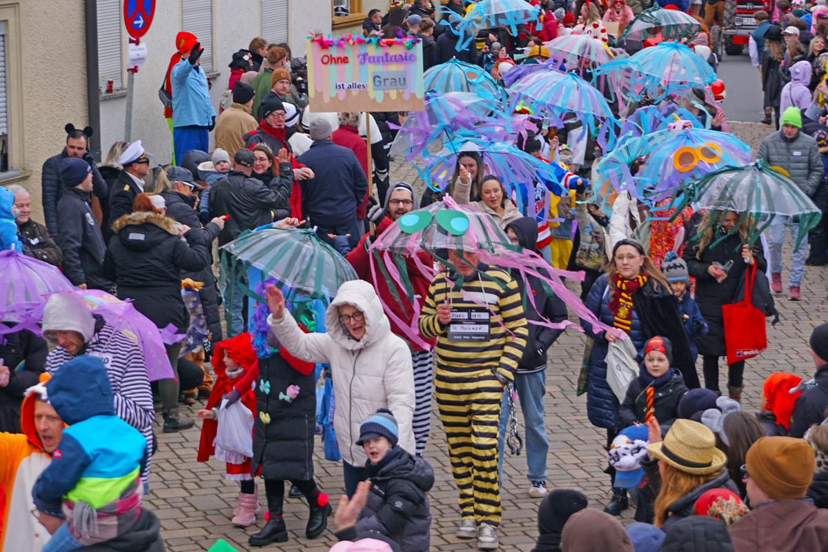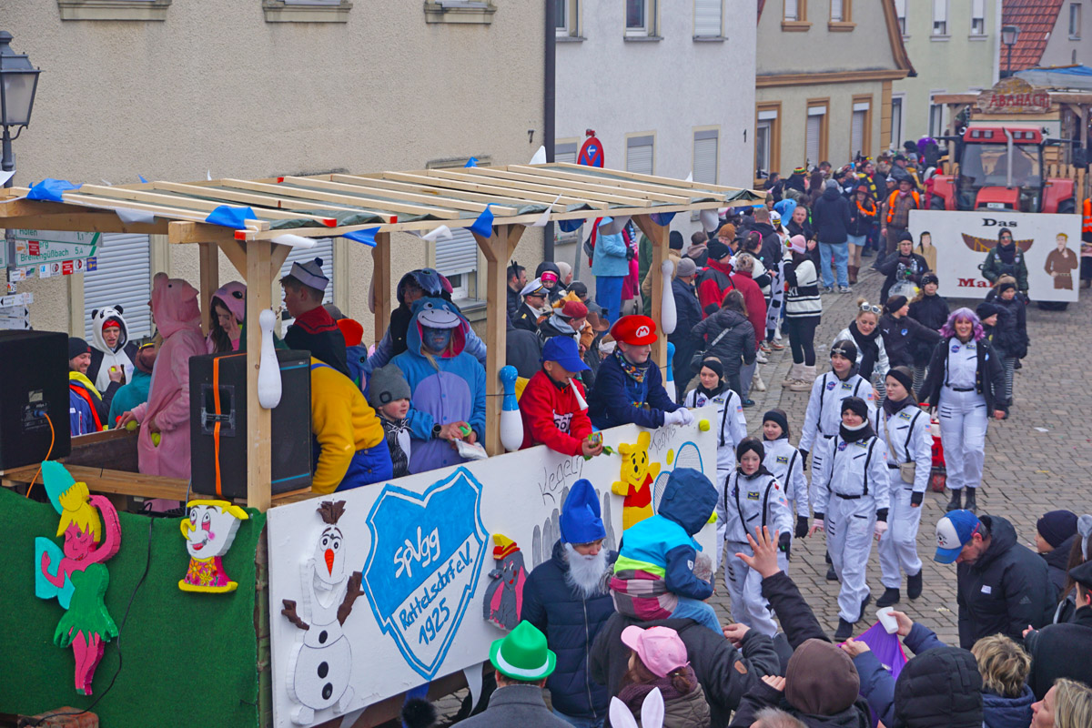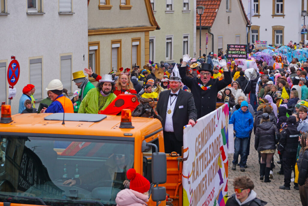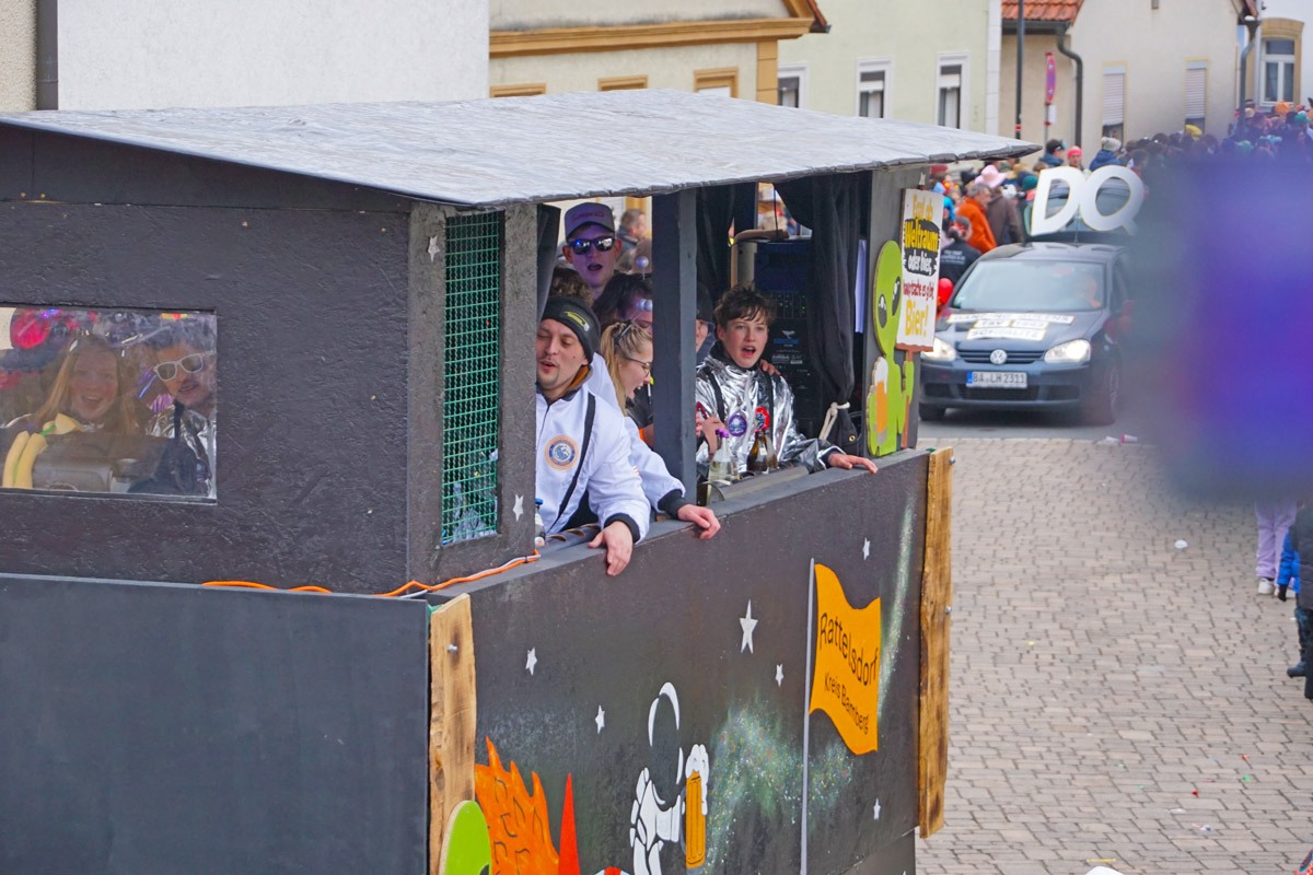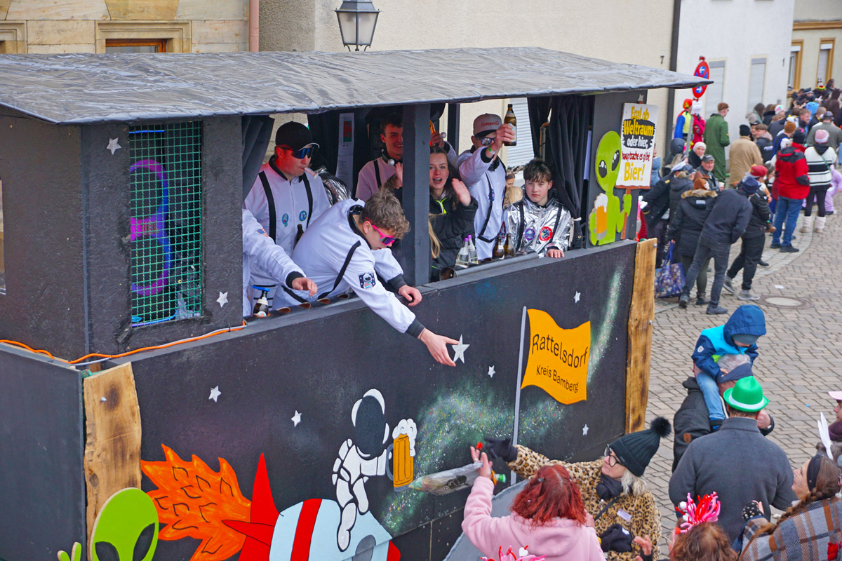 Kalt war’s dieses Jahr beim Rattelsdorfer Faschingsumzug. Vom Feiern ließ sich aber niemand abhalten – im ganzen Ort, vom Torhaus über den Marktplatz bis zum Sportplatz, wurde gefeiert. Mit dabei waren 43 Wägen und Fußgruppen. Auch ein lokales Thema fand sich beim Umzug wieder …