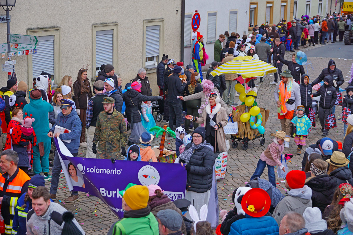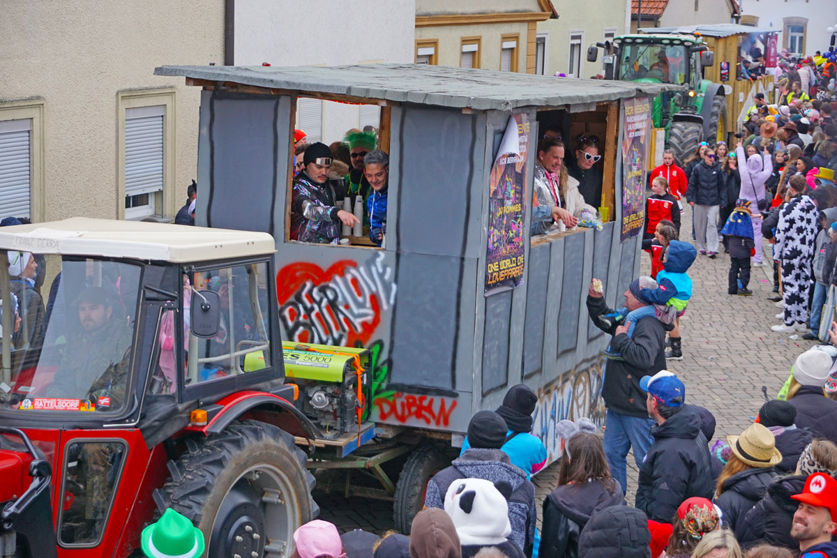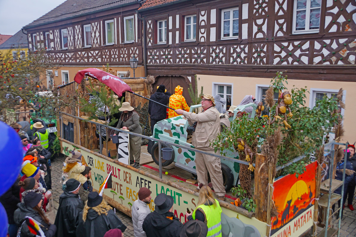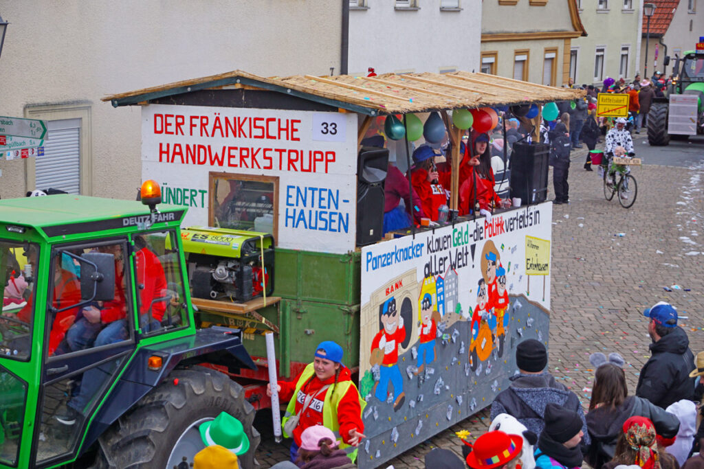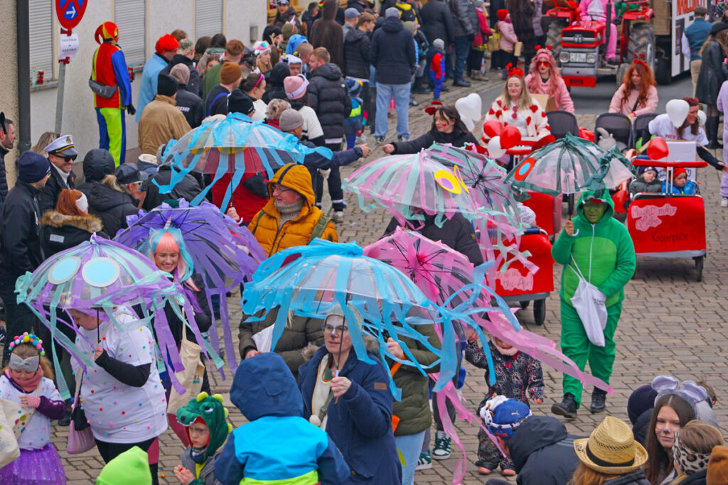 Kalt war’s dieses Jahr beim Rattelsdorfer Faschingsumzug. Vom Feiern ließ sich aber niemand abhalten – im ganzen Ort, vom Torhaus über den Marktplatz bis zum Sportplatz, wurde gefeiert. Mit dabei waren 43 Wägen und Fußgruppen. Auch ein lokales Thema fand sich beim Umzug wieder …