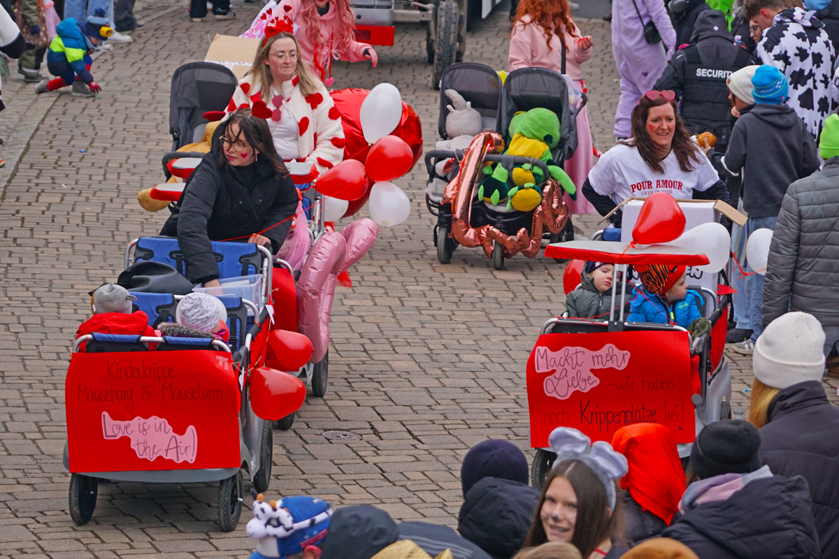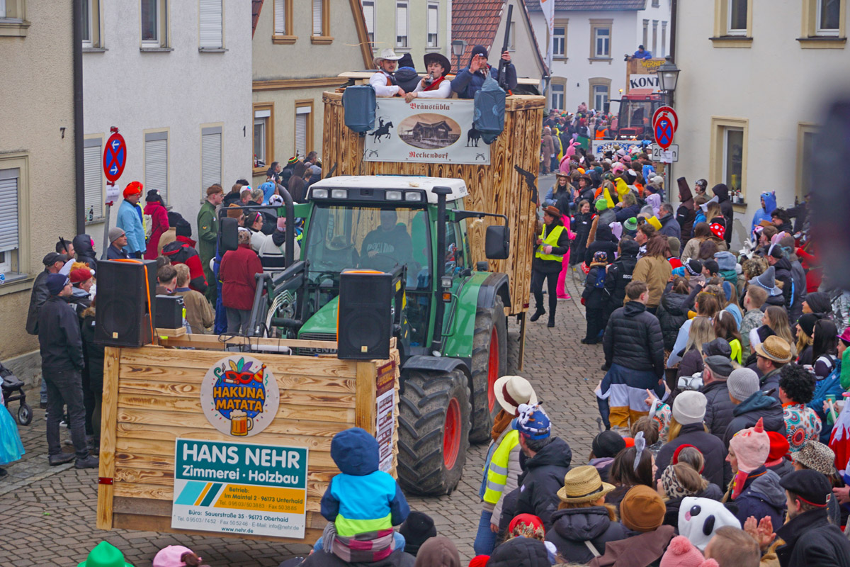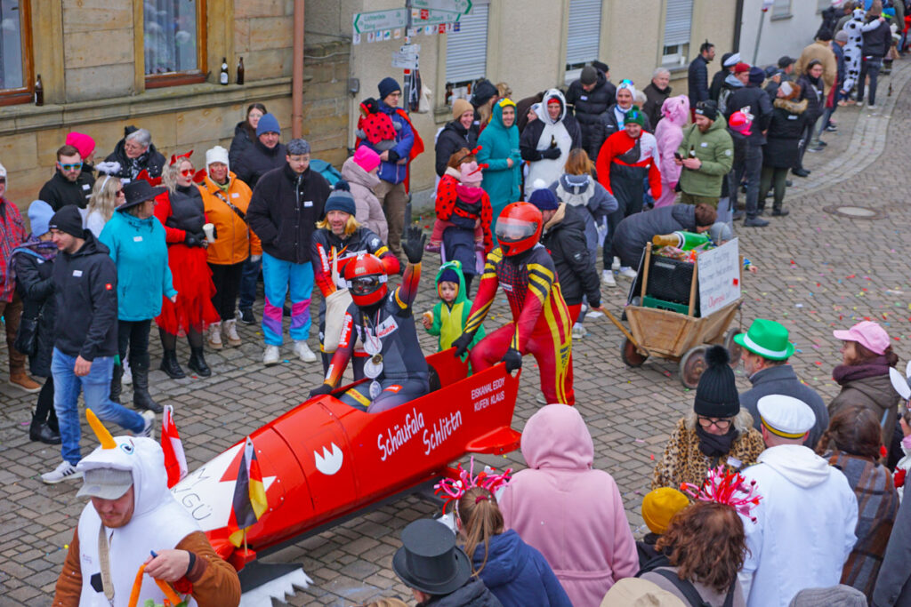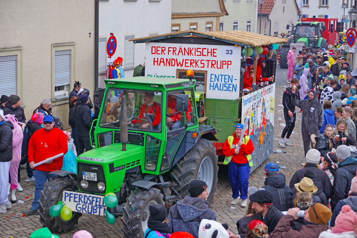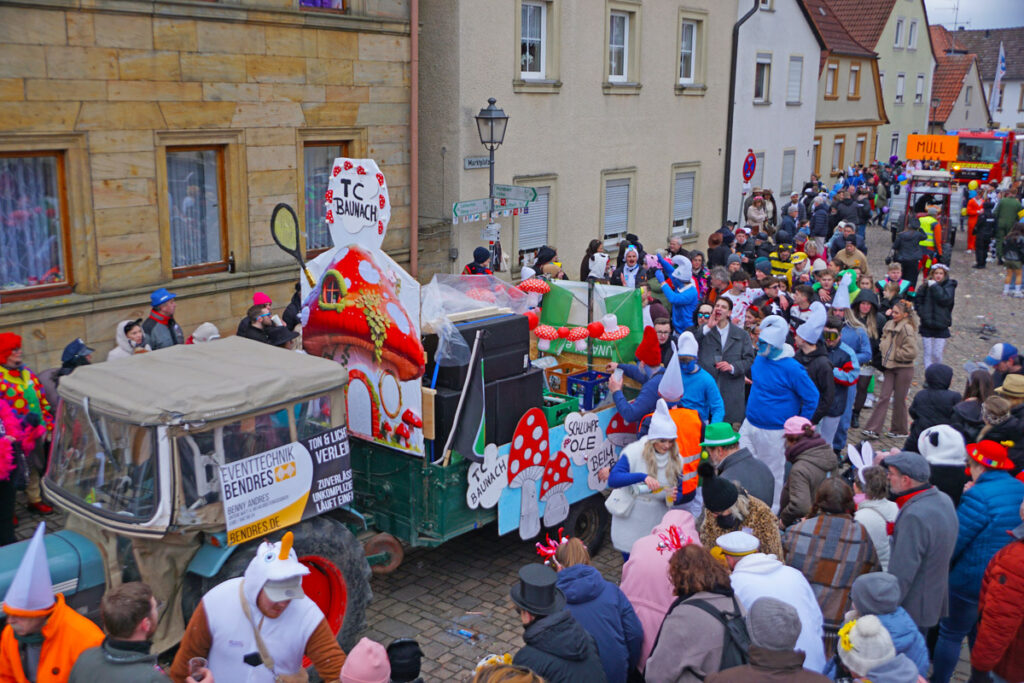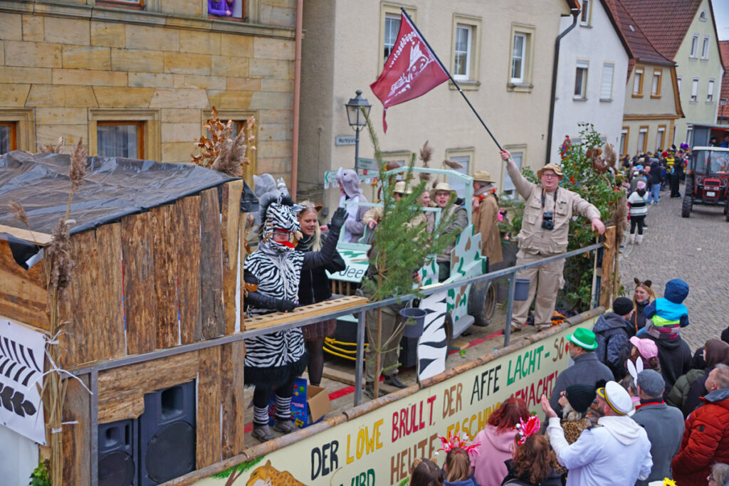 Kalt war’s dieses Jahr beim Rattelsdorfer Faschingsumzug. Vom Feiern ließ sich aber niemand abhalten – im ganzen Ort, vom Torhaus über den Marktplatz bis zum Sportplatz, wurde gefeiert. Mit dabei waren 43 Wägen und Fußgruppen. Auch ein lokales Thema fand sich beim Umzug wieder …