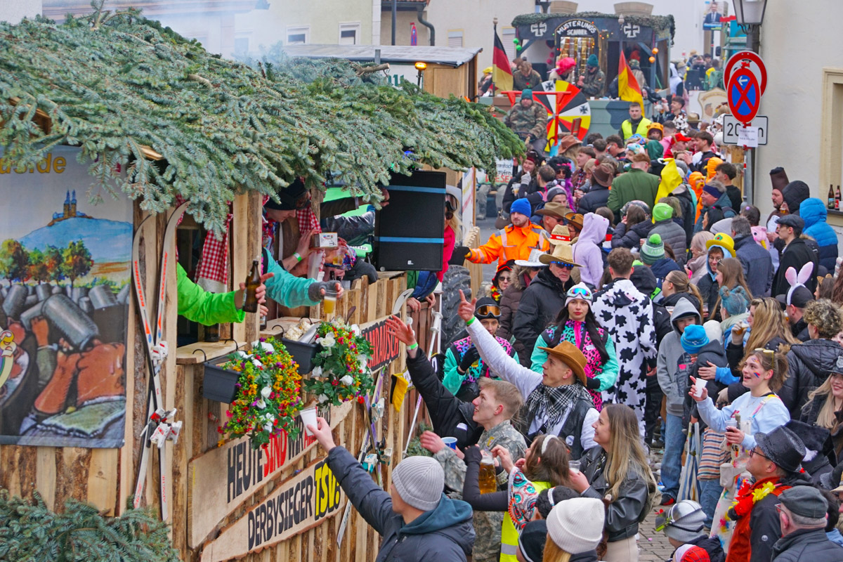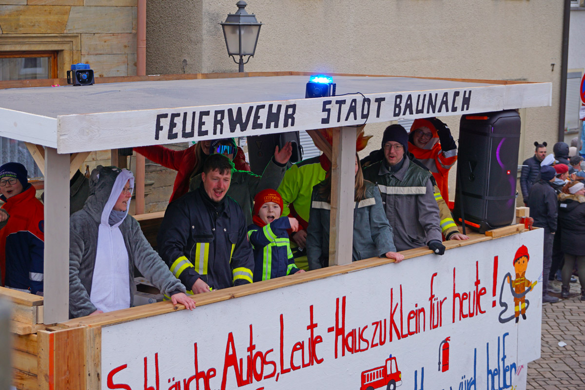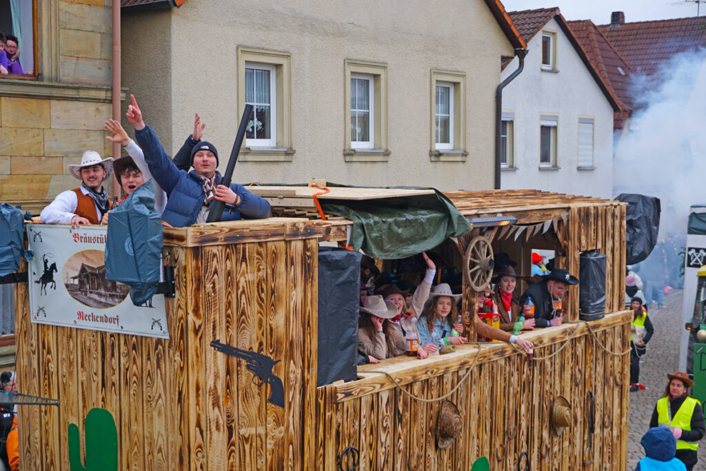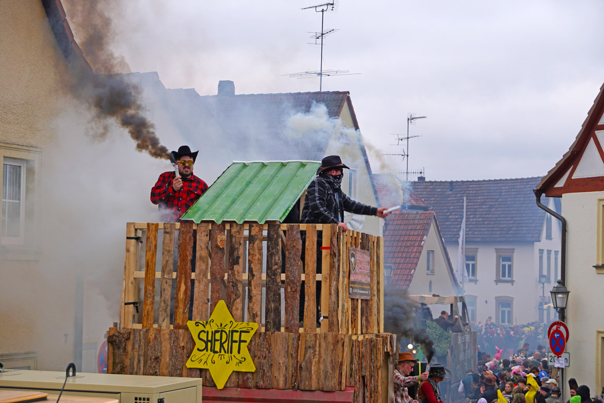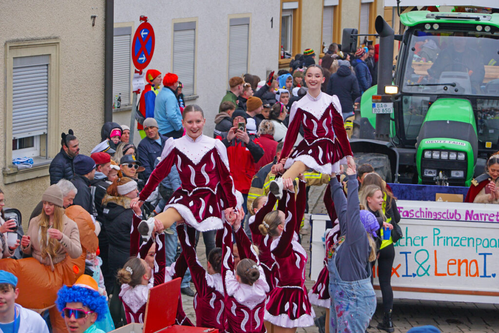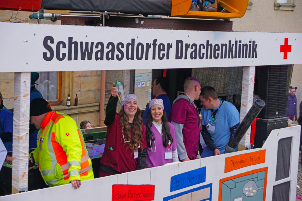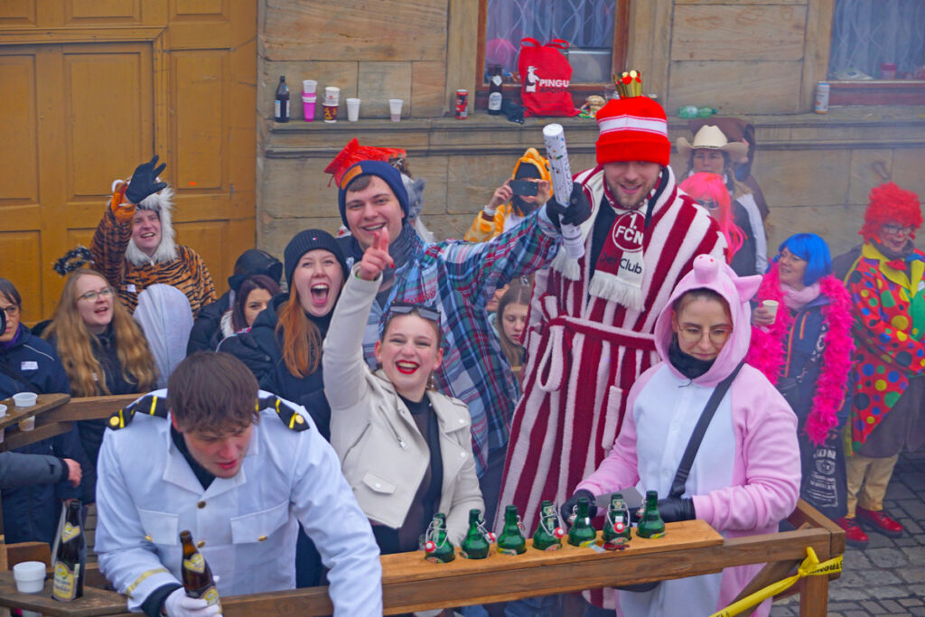 Tänze und kleine Showeinlagen gab es von der Prinzengarde Baunach, der Tanzsportabteilung der SpVgg Rattelsdorf, der Gardetruppe „Dancing Queens“ aus Scheßlitz und der Tanzsportabteilung des SV Waizendorf zu sehen. Ein lokales Thema hatte der Rattelsdorfer Foßernachtsstammtisch mitgebracht: Hier ging es um die zahlreichen Baustellen, die im ganzen Markt im vergangenen Jahr auf Trab hielten, insbesondere durch den Glasfaserausbau. In blauen Nebel tauchte Gerüstbau Müller den ganzen Marktplatz. Und einige Themen wie Werner Beinhart, Wilder Westen oder die Reformen in Sachen Wehrdienst tauchten gleich mehrfach auf den Faschingswagen auf.