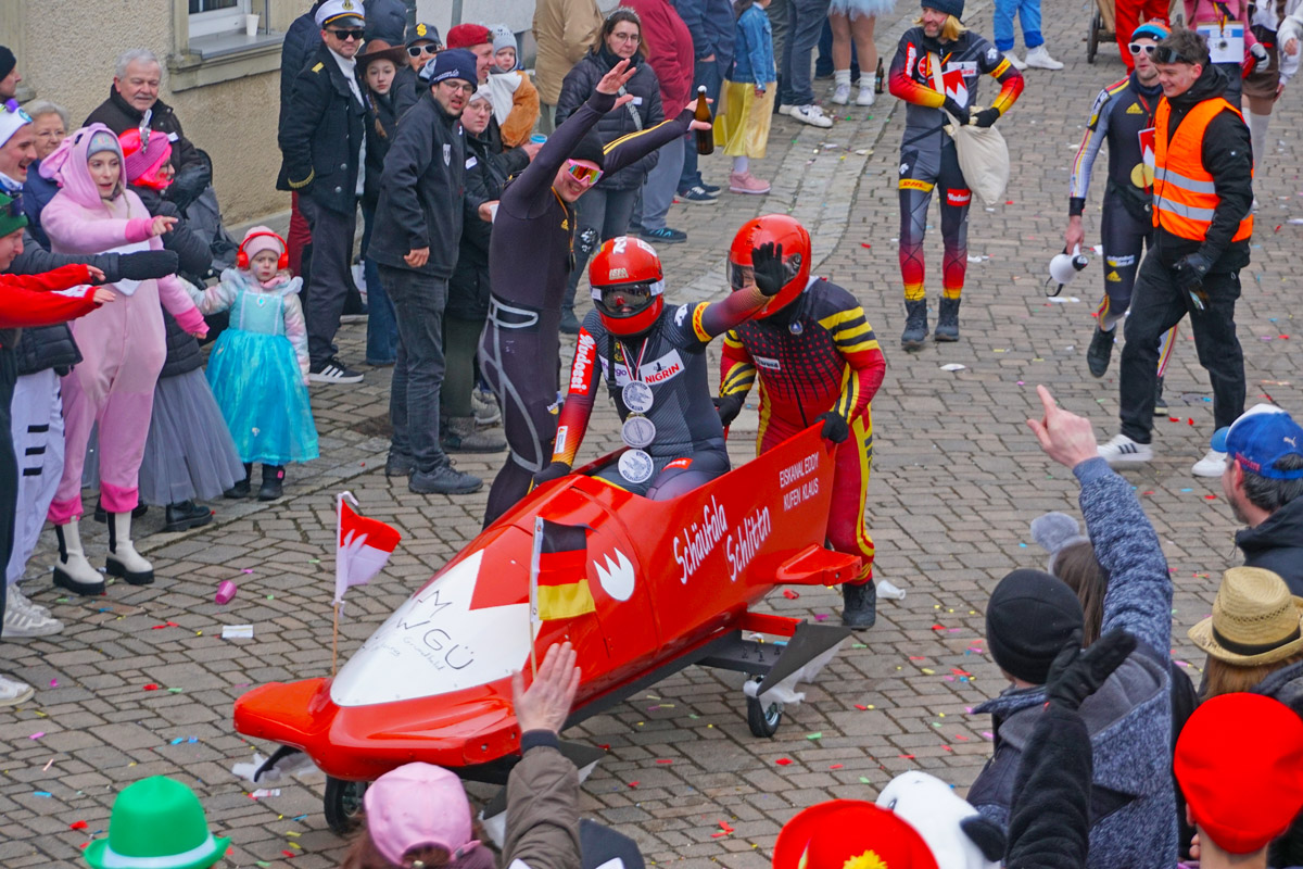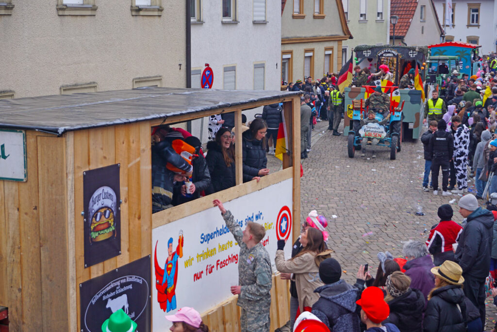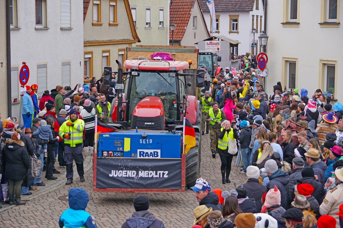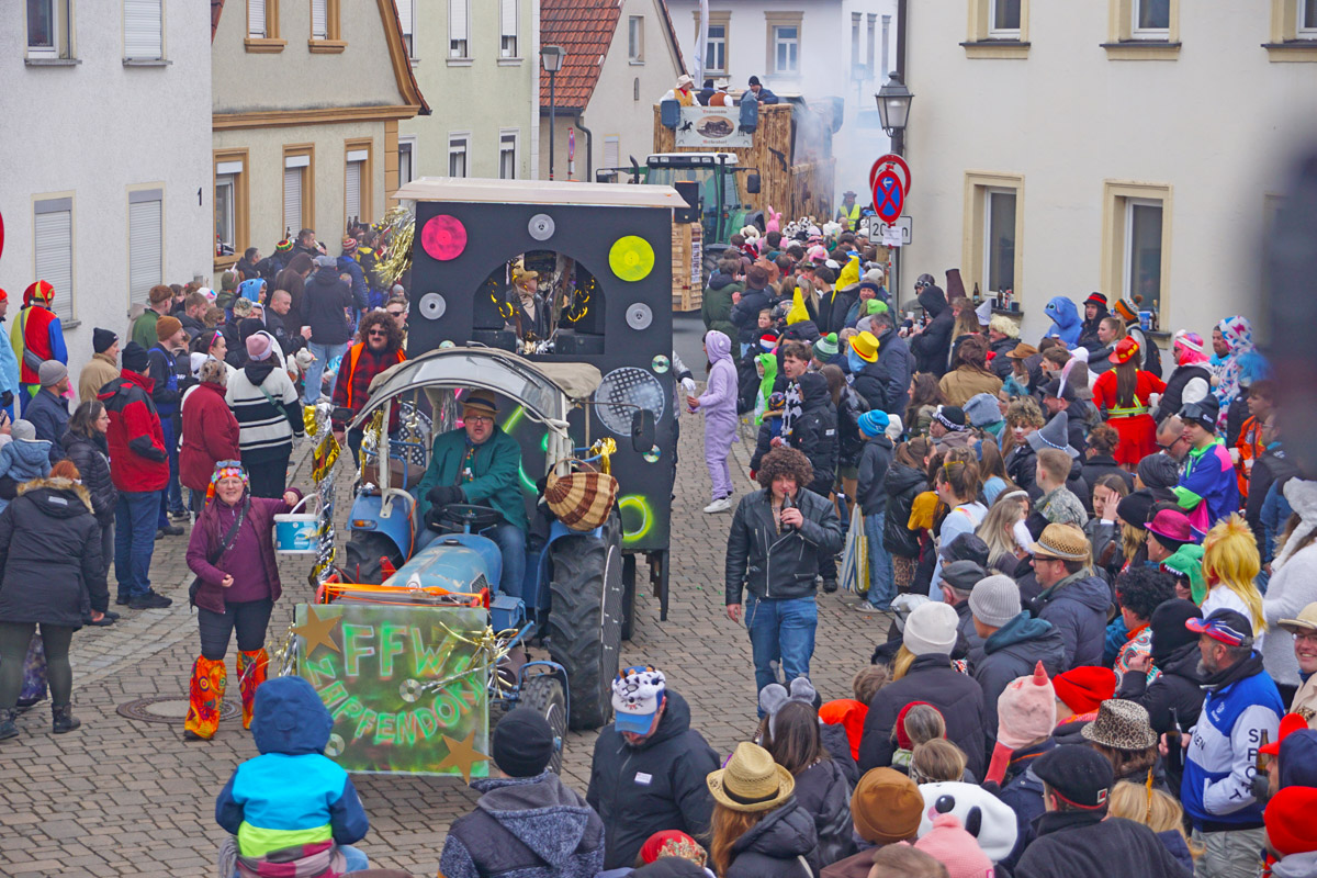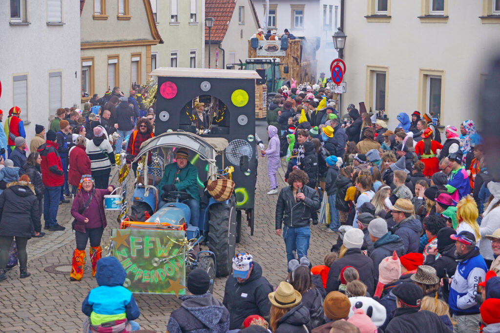 Nach rund einer Stunde waren die 43 Wägen und Fußgruppen dann durch und bewegten sich Richtung Sportplatz zur After-Faschingsumzug-Party. Und Franz Schilling verabschiedete die vielen Besucherinnen und Besucher, die bei zwar zwei Grad Plus, aber eisigem Wind nahezu unbeeindruckt durchgehalten hatten. Und das ist ja auch nicht schwer bei einer solchen Veranstaltung – einfach in Bewegung bleiben und mitfeiern …