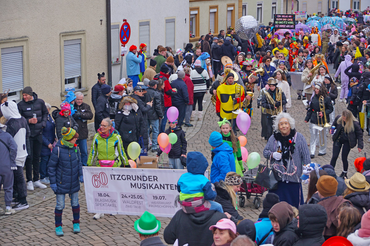Musikalisch begleitet wurde der Gaudiwurm von den Itzgrunder Musikanten des Musikvereins Rattelsdorf. Bunt ging es bei den Kindern der Kinderkrippe Mäuseburg/Mäuseturm, des Kindergartens Rattelsdorf-Mürsbach und den Itzkids zu. Die traditionellen Faschingswagen aus dem Markt Rattelsdorf waren natürlich auch wieder mit von der Partie, ob Nagelbrett Nazareth (der Verein organisierte auch die Faschingsparty nach dem Umzug am Sportplatz), Jugend Medlitz, Bayerischer Gaudi-Wagen, SpVgg Rattelsdorf, Feuerwehr Rattelsdorf, Fränkischa Rauschküh und der Bierclub Rattelsdorf.