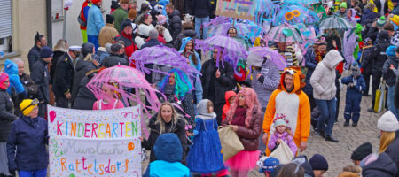 Kalt war’s dieses Jahr beim Rattelsdorfer Faschingsumzug. Vom Feiern ließ sich aber niemand abhalten – im ganzen Ort, vom Torhaus über den Marktplatz bis zum Sportplatz, wurde gefeiert. Mit dabei waren 43 Wägen und Fußgruppen. Auch ein lokales Thema fand sich beim Umzug wieder …
