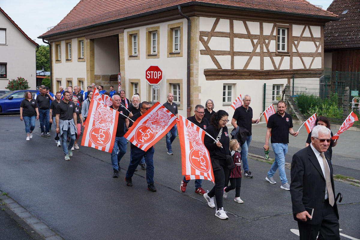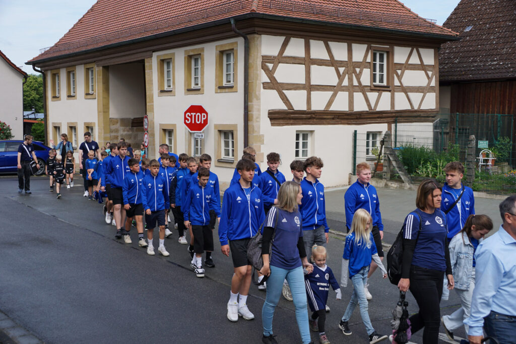 Viel Musik – von Wednesday Project und der Corso Band – gab es am Festwochenende der SpVgg Rattelsdorf zu hören. Der Höhepunkt war aber ohne Frage der Festumzug am Sonntagmorgen, der von der Rattelsdorfer Pfarrkirche zum Festzelt am Sportgelände führte. Zahlreiche Vereine aus dem gesamten Markt Rattelsdorf nahmen teil – und natürlich auch die verschiedenen Abteilungen der SpVgg. Im Festzelt gab es anschließend den Frühschoppen, musikalisch begleitet von den Itzgrunder Musikanten.
