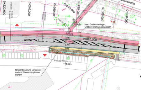 Der Plan zeigt die Lage der Querungshilfe zwischen Ärztehaus und Einkaufsmarkt. Details sind noch zu klären, der Plan ist nicht final (zum Vergrößern antippen oder anklicken).