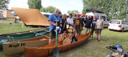 Vor mehr als 30 Jahren hatten sich die Freunde des offenen Kanu-Bootstypus, auch „Kanadier“ genannt, aus ganz Deutschland und der Schweiz zusammengeschlossen, um „Menschen zusammenzubringen, die die Freude am Kanufahren teilen“, so das Vereinsziel. Von Höxter – Berlin – Gotha – Aschaffenburg und anderen Orten waren 45 Mitglieder nach Ebing gekommen, so teilte der Erste Vorsitzende Norbert Beliawski beim Besuch des Zeltdorfes mit, der selbst aus Neumünster bei Kiel angereist war.